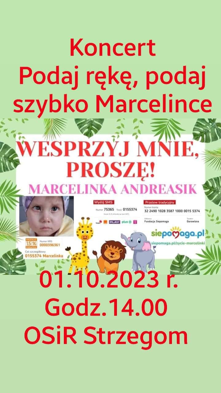 Ponadto lokalna społeczność szykuje charytatywny koncert, który będzie okazją, by otworzyć serca i portfele. Impreza odbędzie się 1 października o godzinie 14.00 na terenie strzegomskiego Ośrodka Sportu i Rekreacji.