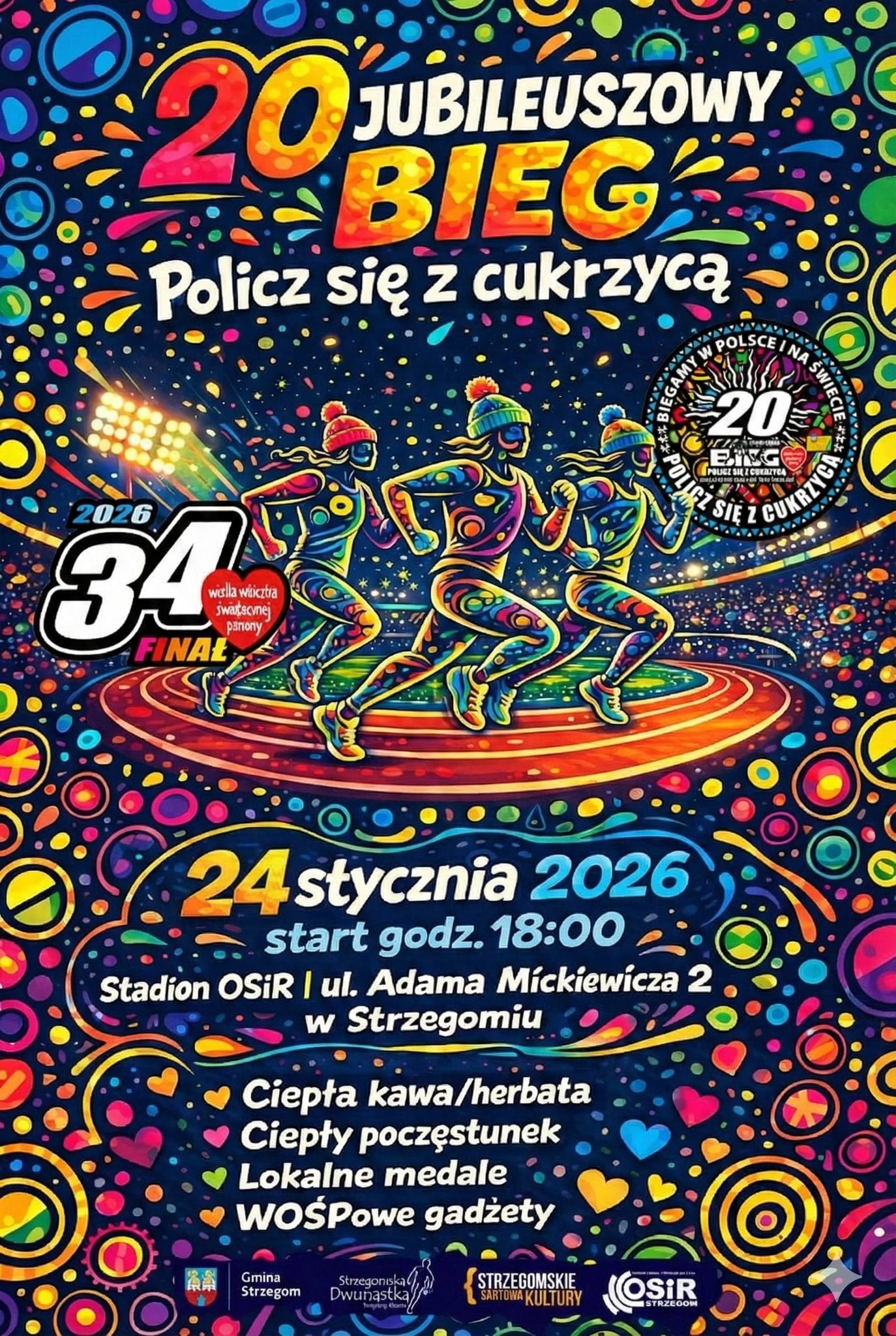 Bieg „Policz się z cukrzycą” od dwudziestu lat towarzyszy finałowym wydarzeniom Wielkiej Orkiestry Świątecznej Pomocy. Akcja ma na celu promocję zdrowego i aktywnego trybu życia oraz zwrócenie uwagi na problem cywilizacyjny, jakim jest cukrzyca. Do udziału w lokalnej odsłonie inicjatywy zachęca po raz czwarty Stowarzyszenie Strzegomska Dwunastka.