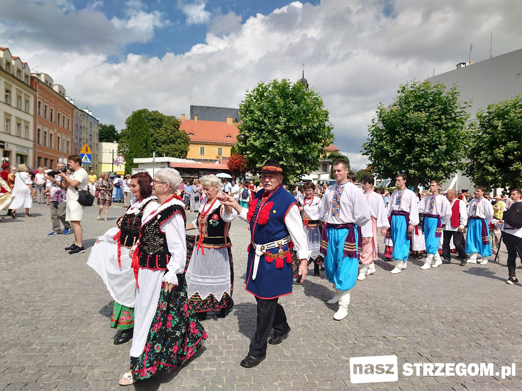 XXXI Międzynarodowy Festiwal Folkloru w Strzegomiu dobiega końca. Czwarty dzień festiwalowy był przebogaty w atrakcje. Rozpoczął się wczesnym rankiem od śniadania na strzegomskim rynku. Po mszy świętej barwny korowód zespołów przeszedł do centrum, gdzie wszyscy uczestnicy tradycyjnie zatańczyli barwnego poloneza.