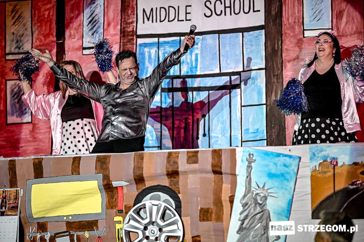 Aulę Zespołu Szkół Ogólnokształcących w Strzegomiu po raz dziewiętnasty wypełnił teatralny klimat. Tym razem uczniowie, kadra szkoły oraz zaproszeni goście zmierzyli się z „Grease” – klasyką musicalu z lat 50. Dyrektor placówki Przemysław Knap informuje, że w spektaklu wystąpiło blisko sześćdziesiąt osób.