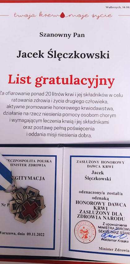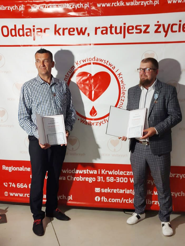 - Wczorajsza gala, zorganizowana przez Regionalne Centrum Krwiodawstwa i Krwiolecznictwa w Wałbrzychu była dla mnie i Tomka wyjątkowym przeżyciem oraz motywacją do dalszego dzielenia się krwią – tłumaczy Jacek Ślęczkowski.