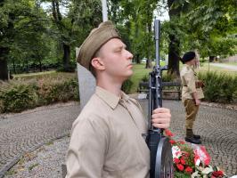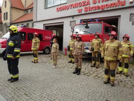 Punktualnie o godzinie 17.00 w mieście rozbrzmiały syreny, a w Rynku rozbłysły flary i usłyszeć można było słowa hymnu narodowego. W tym samym czasie strażacy z OSP Strzegom ustawili się w szyku pod remizą. Kilka minut później o godzinie „W” przypomnieli strzegomscy strzelcy, którzy zebrali się miejskim parku przy pomniku Żołnierzy Niezłomnych.