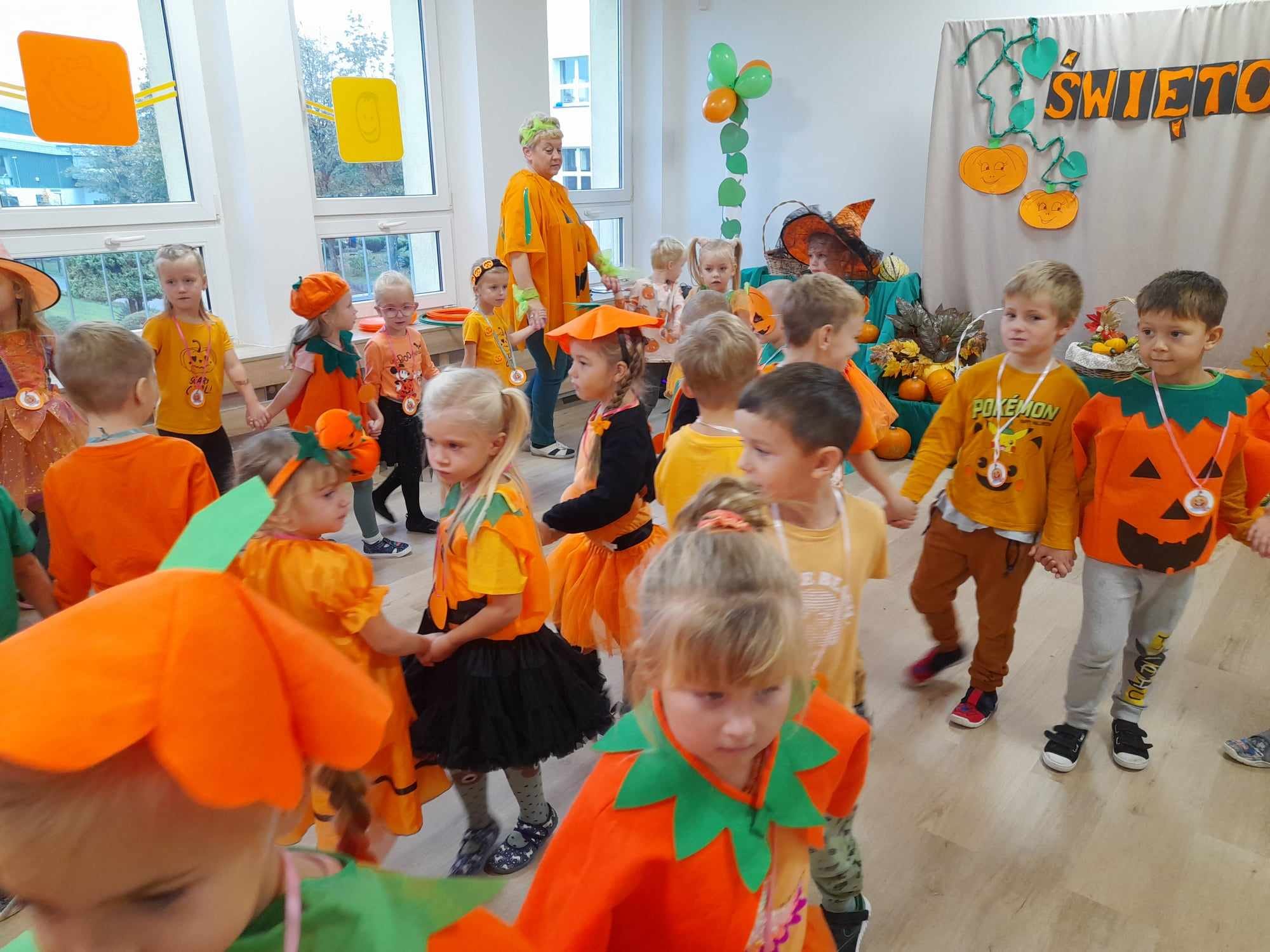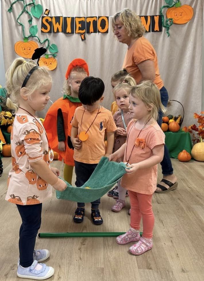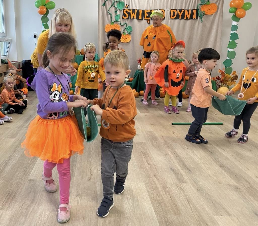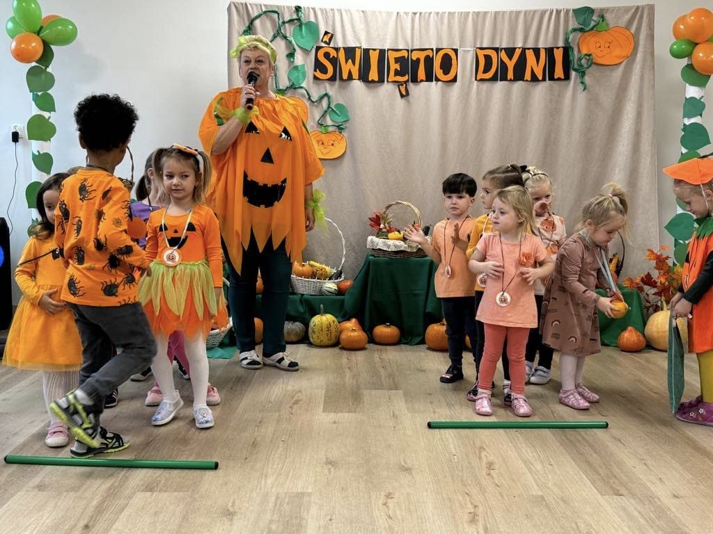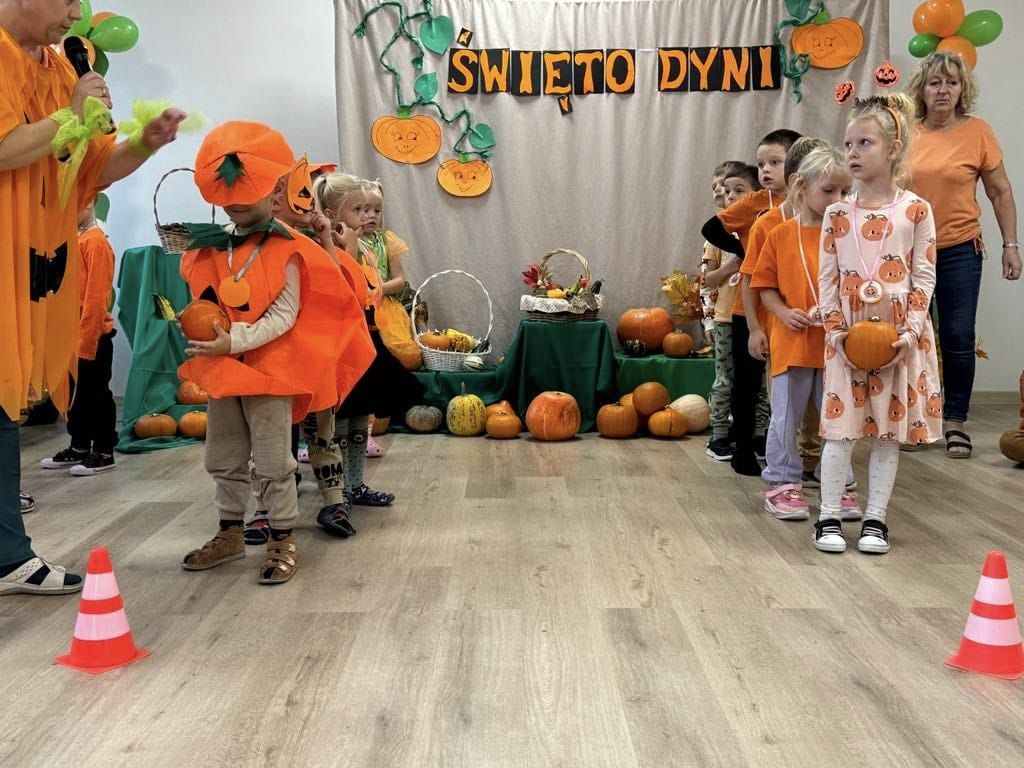 Przedszkolaki, przebrane w dyniowe stroje, brały udział w licznych konkursach i grach, a radość i śmiech wypełniały przedszkolne sale. Festiwal nie tylko integrował dzieci, ale także rozwijał ich kreatywność, podkreślając przy tym piękno jesiennej natury.