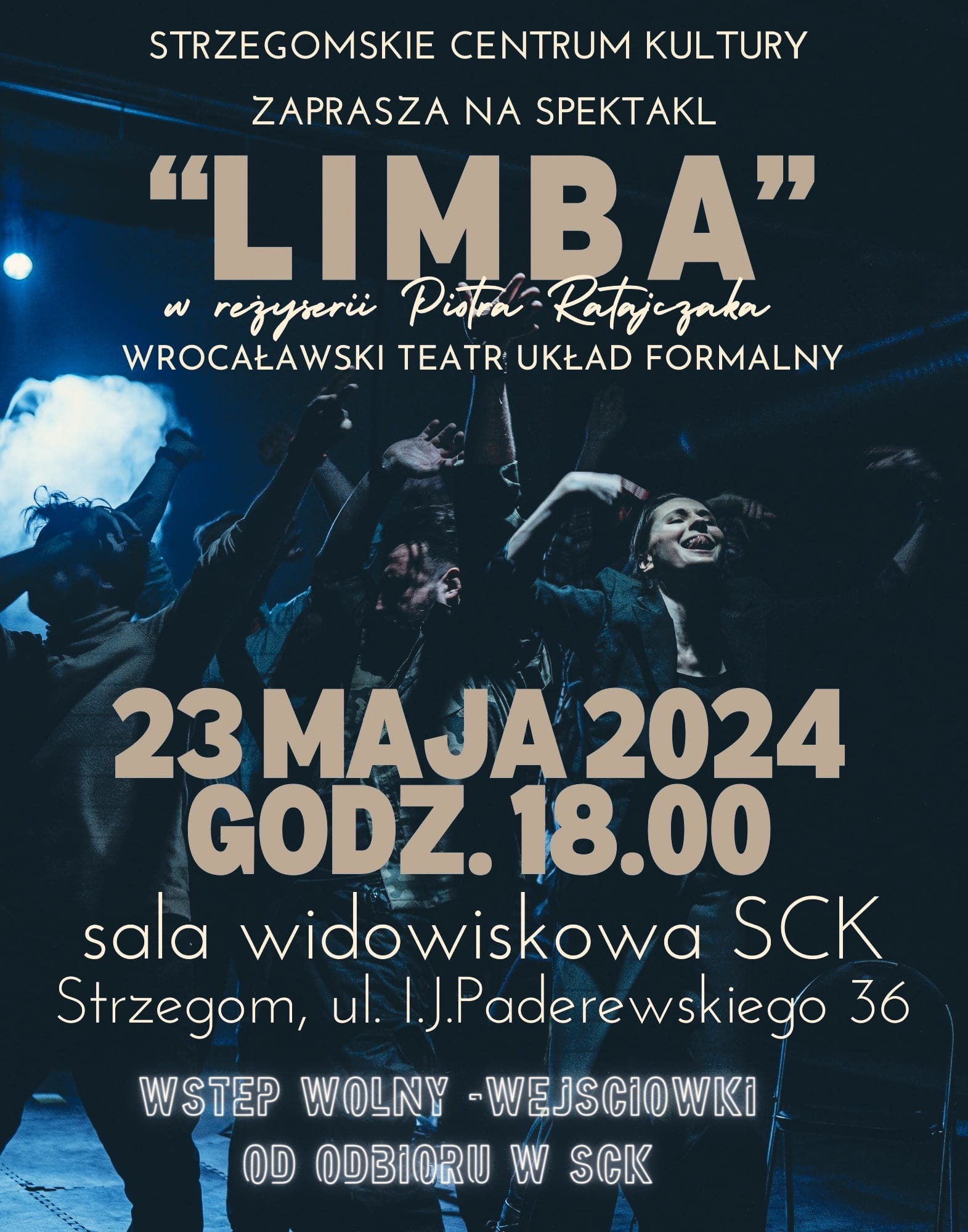 Nieodpłatne wejściówki na "Limbę" są dostępne w sekretariacie Strzegomskiego Centrum Kultury w godzinach pracy placówki. Spektakl zaplanowano na 23 maja od godziny 18.00 w sali widowiskowej SCK.