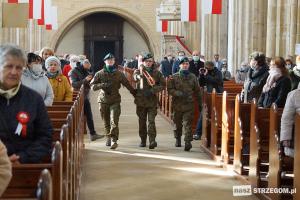 Tegoroczne obchody Narodowego Święta Niepodległości w Strzegomiu rozpoczęły się od wciągnięcia flagi narodowej przy Bazylice Mniejszej. Nie zabrakło uroczystej mszy św., wojskowej asysty honorowej oraz programu artystycznego w Strzegomskim Centrum Kultury. Nie zawiedli także strzegomscy motocykliści.