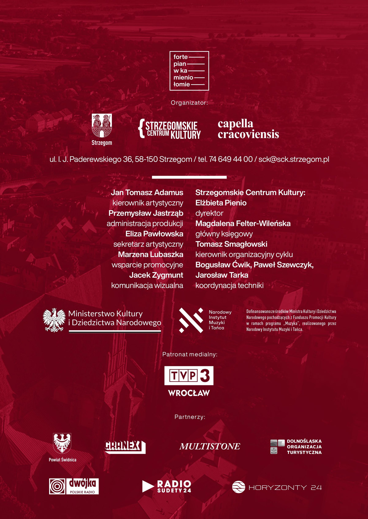 Wicedyrektor Strzegomskiego Centrum Kultury, Tomasz Smagłowski, informuje, że w tym roku Strzegom odwiedzą wybitni pianiści młodego pokolenia: Martyna Zakrzewska, Petra Somlai, Piotr Pawlak oraz artyści z formacji Fortepiano Atelier.