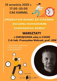 Prowadzący podkreśla, że stawia na praktyczny wymiar zajęć. - W ramach tych warsztatów chciałbym zaangażować uczestników do działań praktycznych i pokazać kilka narzędzi, które mogą pomóc zdefiniować siebie w czasie, znaleźć jakieś inspiracje do tego, aby trochę lepiej się w tym czasie lokować. Kilka chwil poświęcę na to, aby trochę o tym czasie i lokowaniu siebie poopowiadać, ale stawiam jednak mocny akcent na praktyczne doświadczenia uczestników. Zachęcam również panów do udziału, chętnie zobaczyłbym was na sali – dodaje.