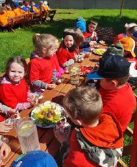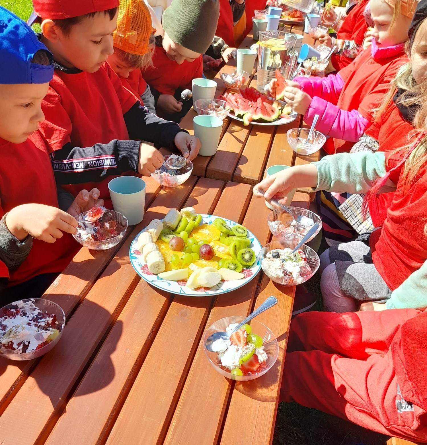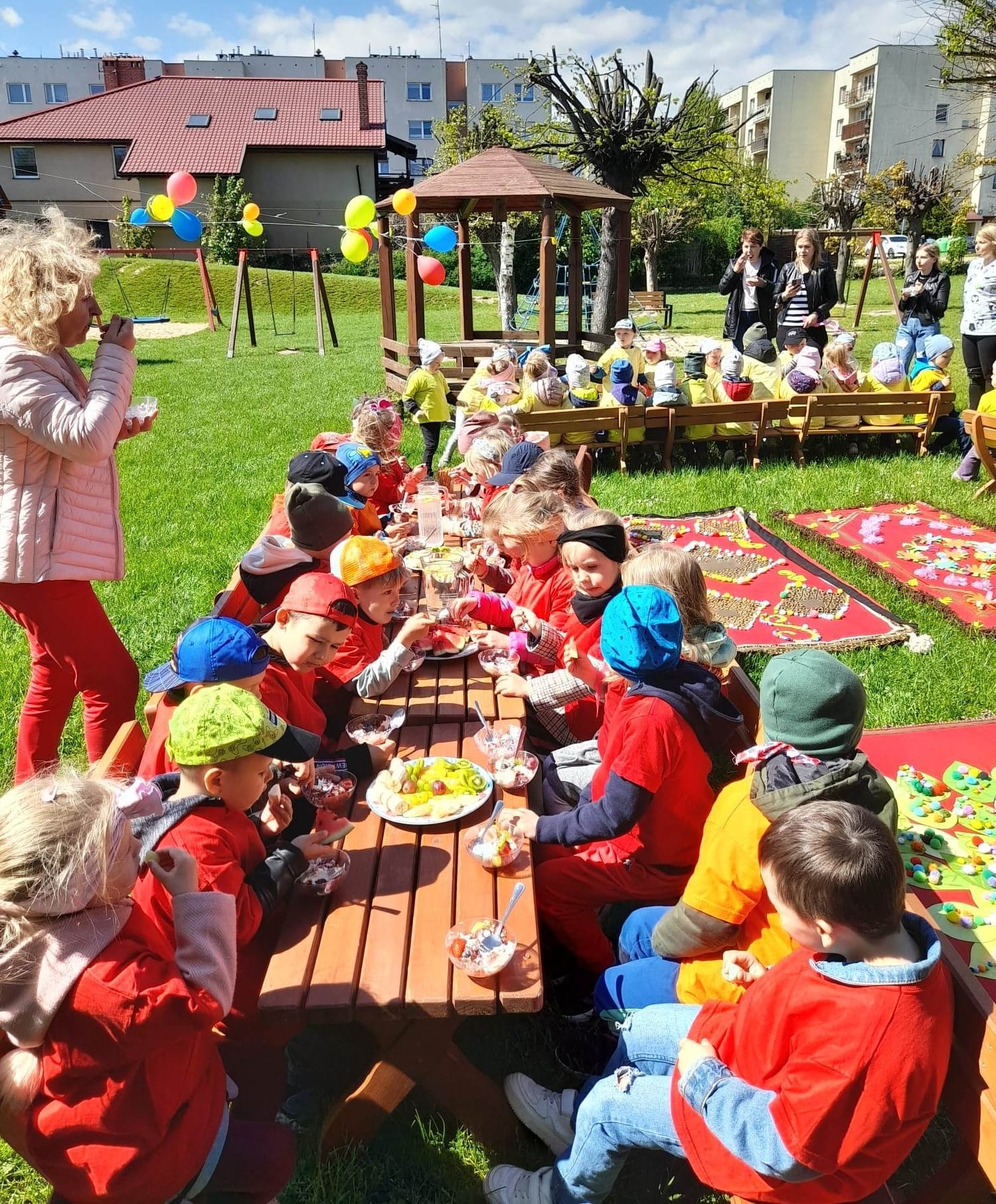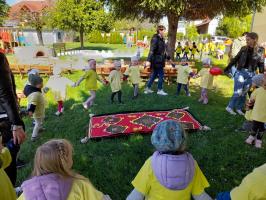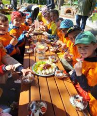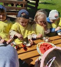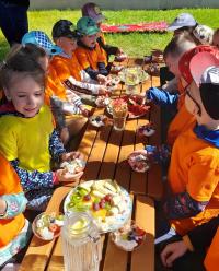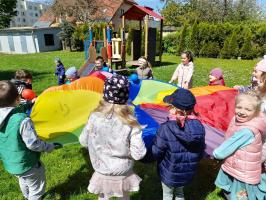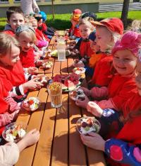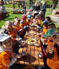 Finał XII edycji Ogólnopolskiego Święta Optymizmu obchodzono w przedszkolnym ogrodzie. Towarzyszyło mu wspólne odśpiewanie „Hymnu Optymistów”, zabawy oraz owocowy piknik. Wydarzeniu dopisała także aura, która rozgrzewała u wszystkich optymistyczny nastrój wiosennymi promieniami słońca.