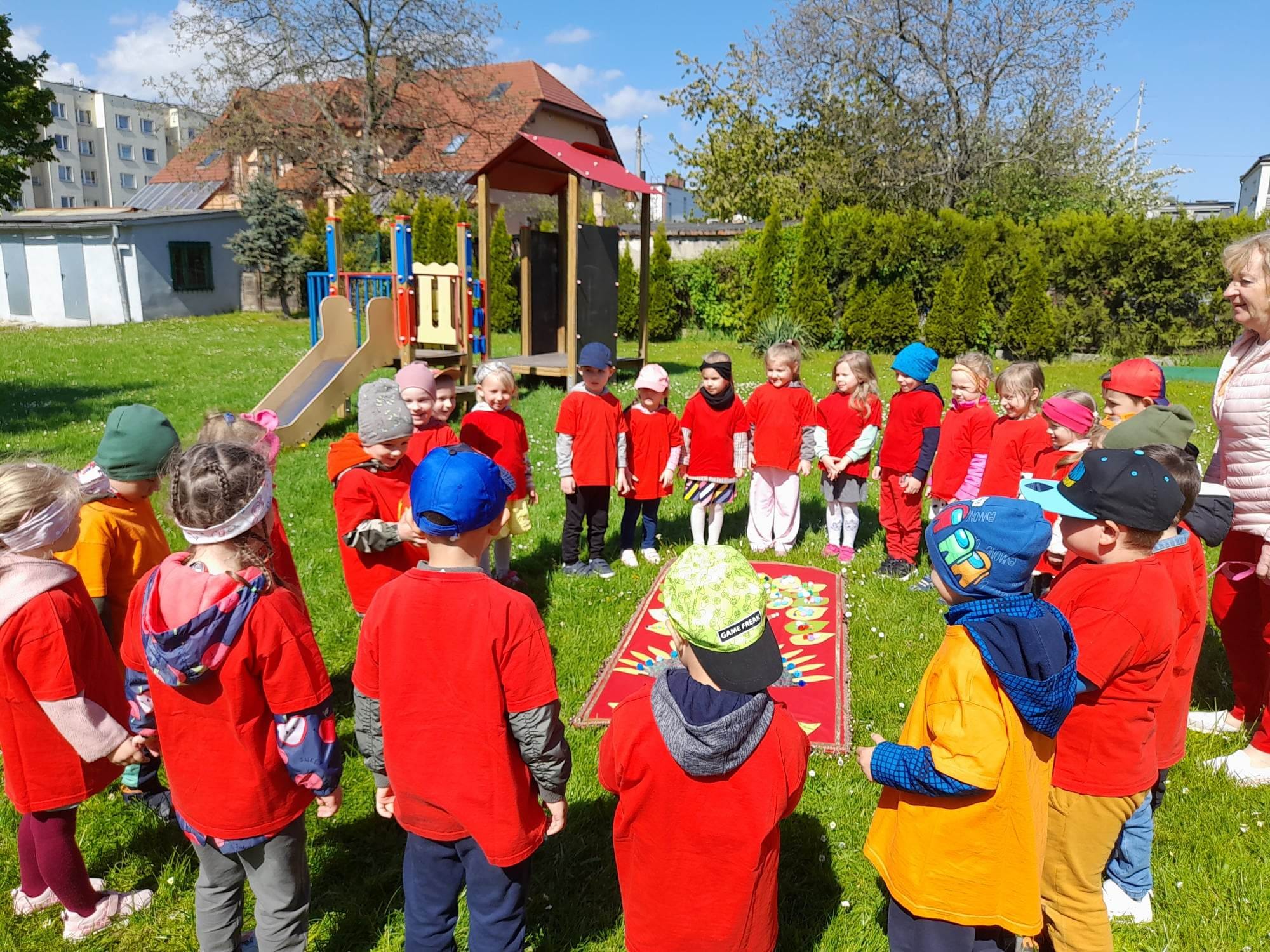 - Magia tego święta i moc czerwieni sprawiła, że były to niezwykłe dywany, na których z dziecięcą wyobraźnią i marzeniami unosiliśmy się w górę. Połączyliśmy się łańcuchem przyjaźni, radości i wesołej zabawy z optymistycznymi przedszkolami – relacjonuje dyrektor placówki, Wiesława Górka.