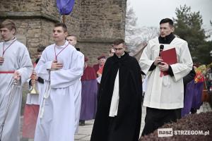 Mieszkańcy miasta spotkali się pod kościołem pw. św. Barbary, gdzie nastąpiło uroczyste poświęcenie palm wielkanocnych, a następnie przeszli ulicami Strzegomia do Bazyliki Mniejszej.