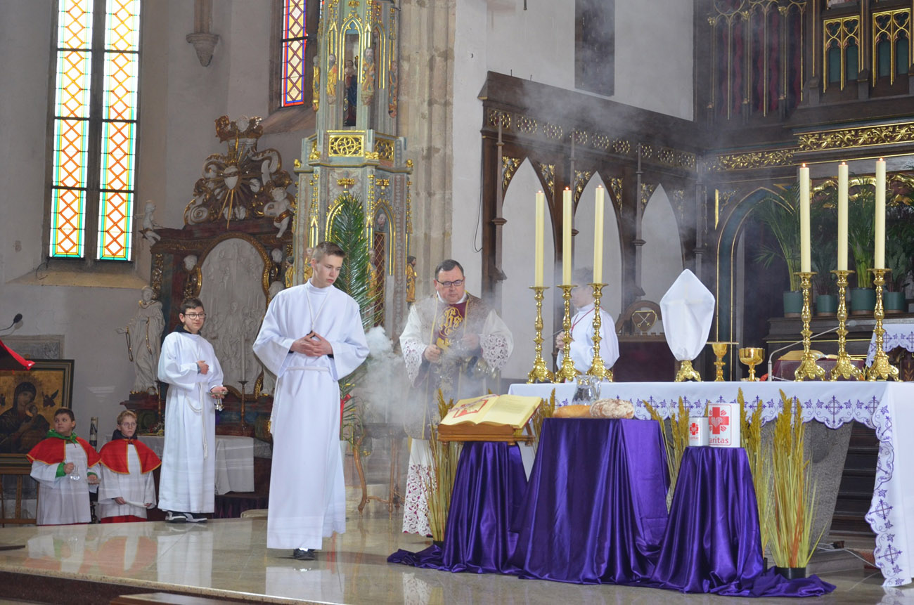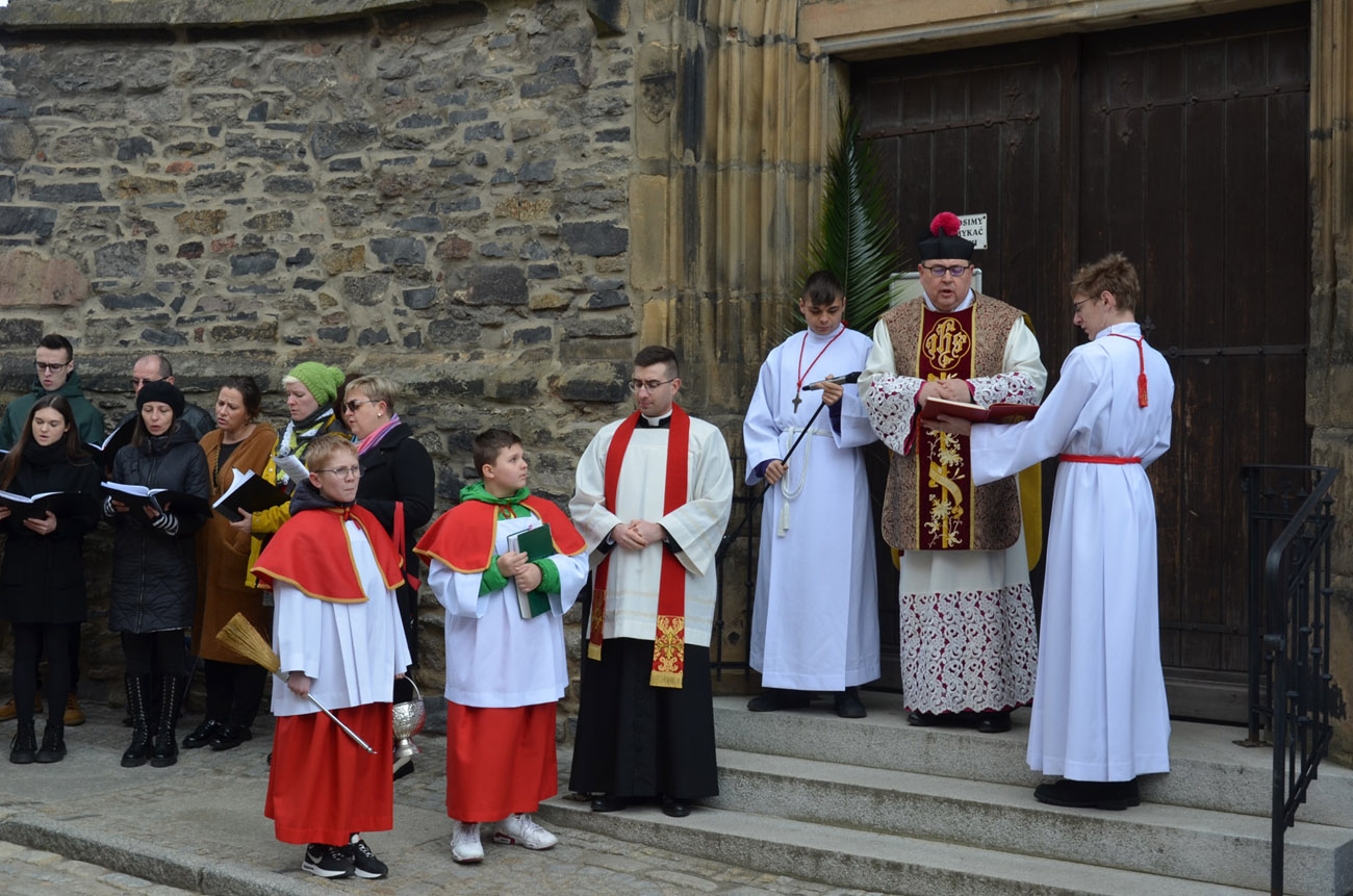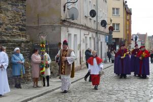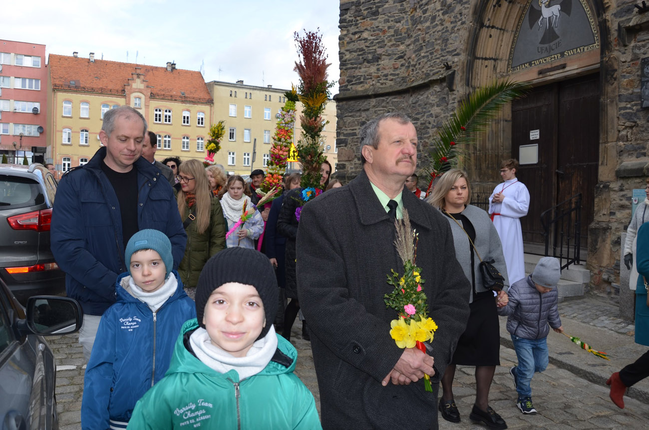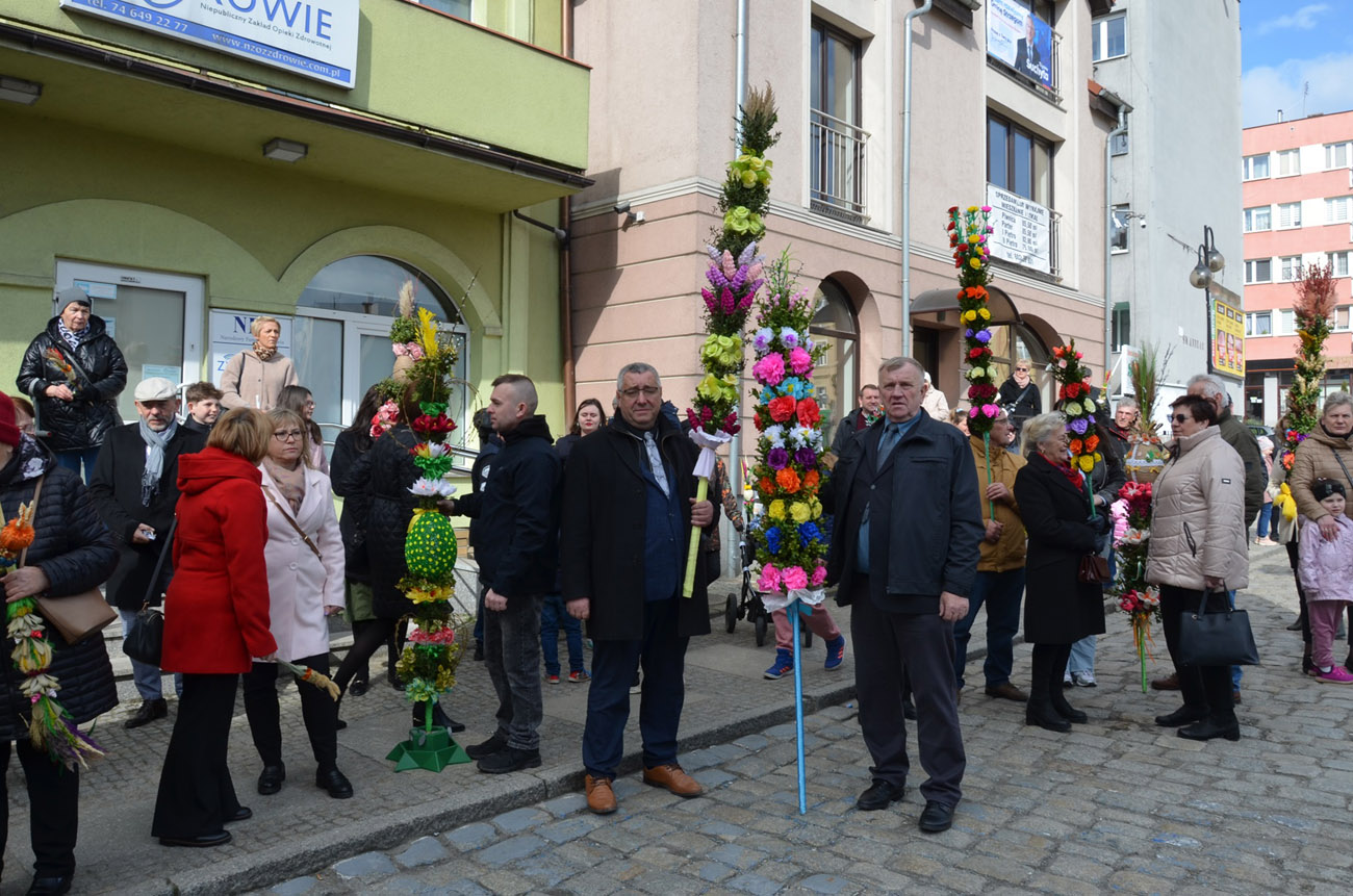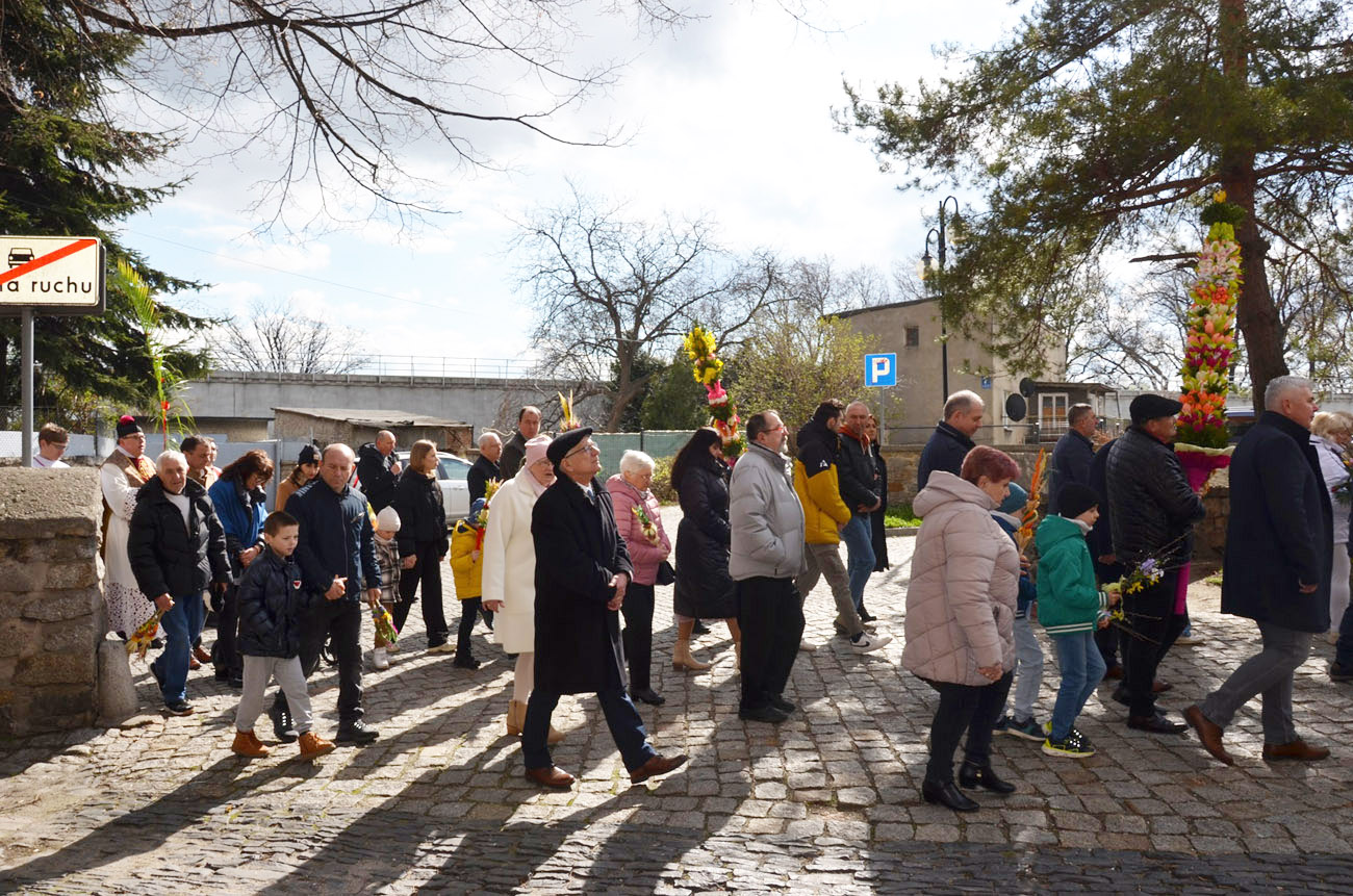 Mieszkańcy miasta spotkali się pod kościołem pod wezwaniem św. Barbary, gdzie nastąpiło uroczyste poświęcenie palm wielkanocnych, a następnie przeszli ulicami Strzegomia do Bazyliki Mniejszej, gdzie odbyła się msza św.