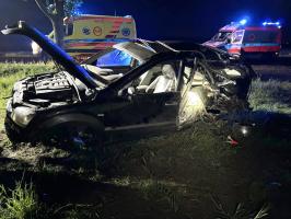 Pijany kierowca uderzył osobówką w drzewo. Dwie osoby zostały poszkodowane [FOTO]