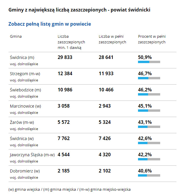 Ponad 73 tys. osób zaszczepionych przeciw COVID-19 w powiecie. Ile w gminie Strzegom?