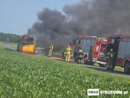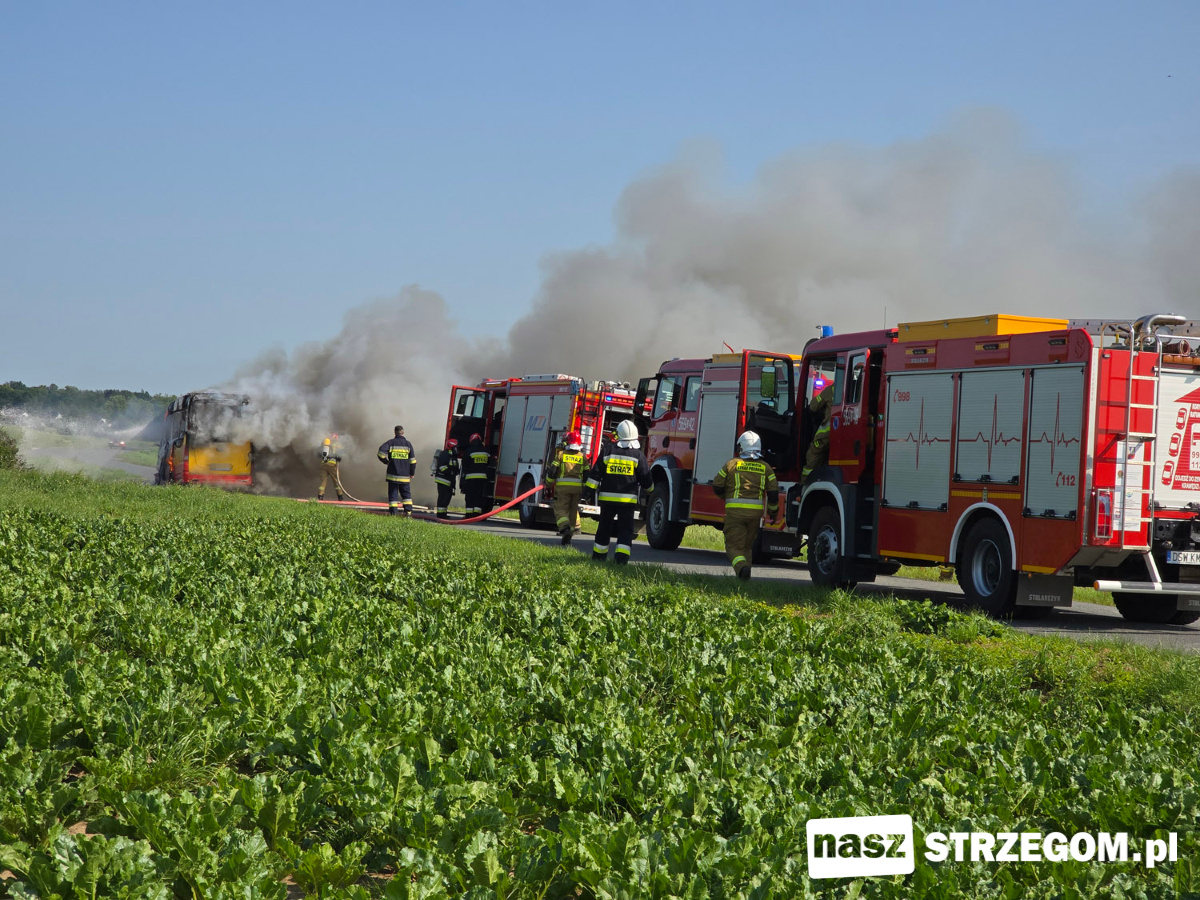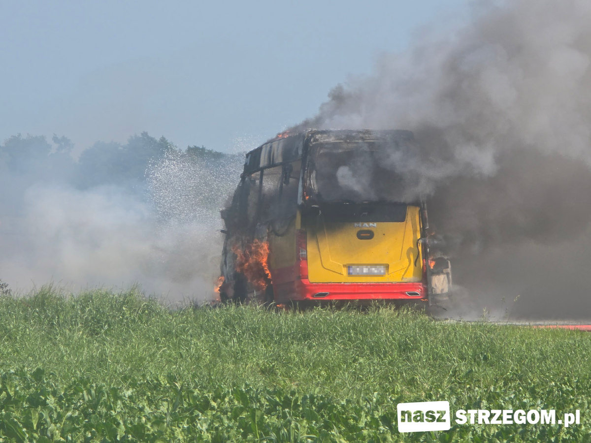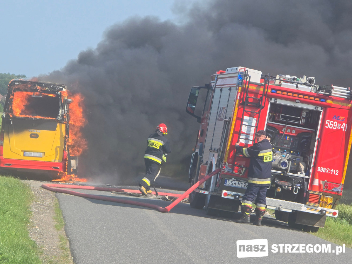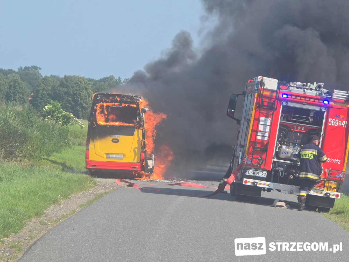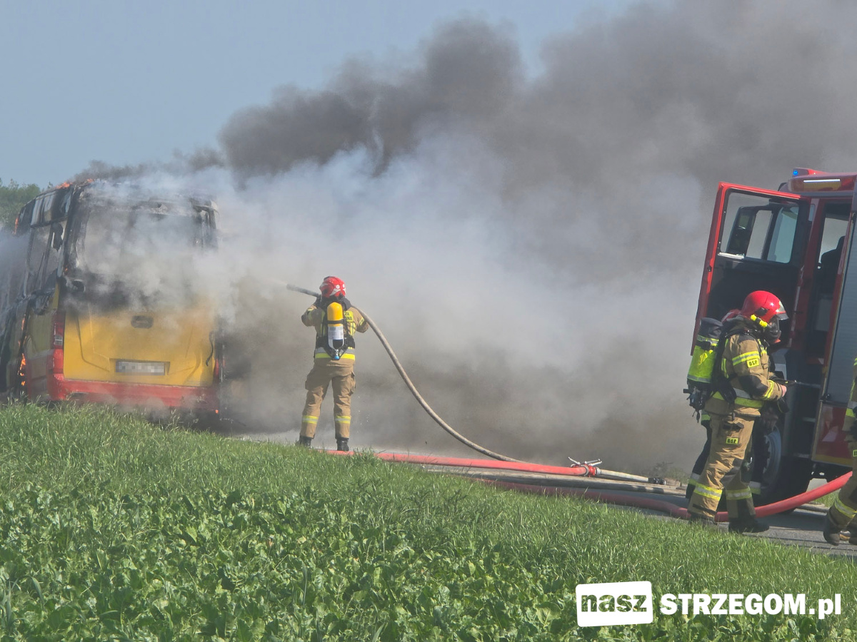 Cztery zastępy straży pożarnej zadysponowano na drogę między Strzegomiem a Morawą. 12 czerwca doszło tam do pożaru autobusu. Na szczęście pojazdem podróżował tylko kierowca.