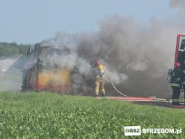 Pożar autobusu między Morawą a Strzegomiem [FOTO+WIDEO]