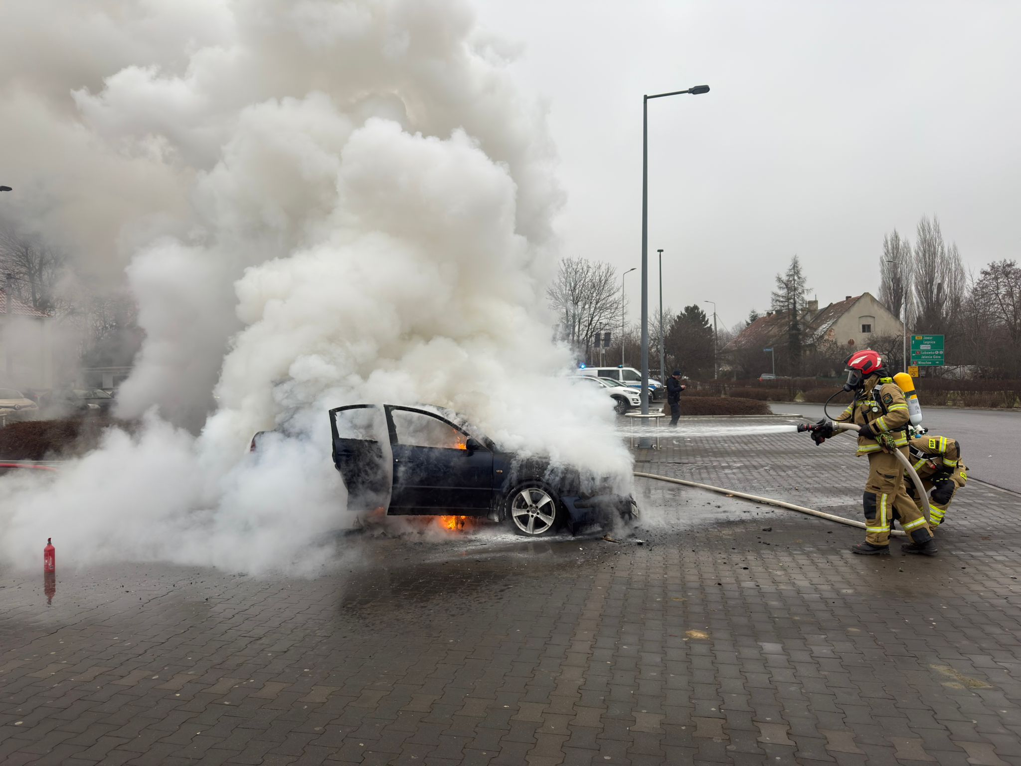 Służby otrzymały zgłoszenie 24 stycznia o godz. 14:36. – Po dojeździe na miejsce pożar był już rozwinięty. Działania strażaków polegały na jego ugaszeniu. Po sprawdzeniu pojazdu kamerą termowizyjną samochód został przekazany właścicielowi, który pojawił się na miejscu zdarzenia. Nikt nie odniósł obrażeń, nie odnotowano również innych strat – informuje bryg. Łukasz Grzelak, zastępca komendanta Komendy Powiatowej PSP w Świdnicy.