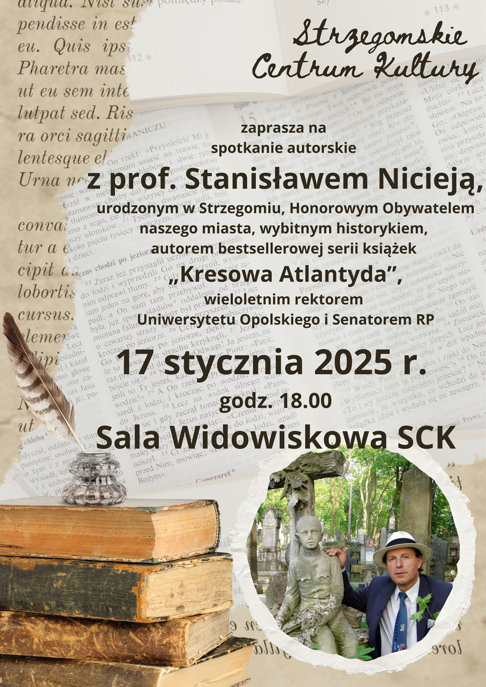 Wybitny historyk i popularyzator dziejów Kresów Wschodnich prof. Stanisław Sławomir Nicieja odwiedzi Strzegom. Na spotkaniu autorskim zaprezentuje mieszkańcom kolejną swoją książkę z bestsellerowej serii pt. „Kresowa Atlantyda”.
