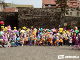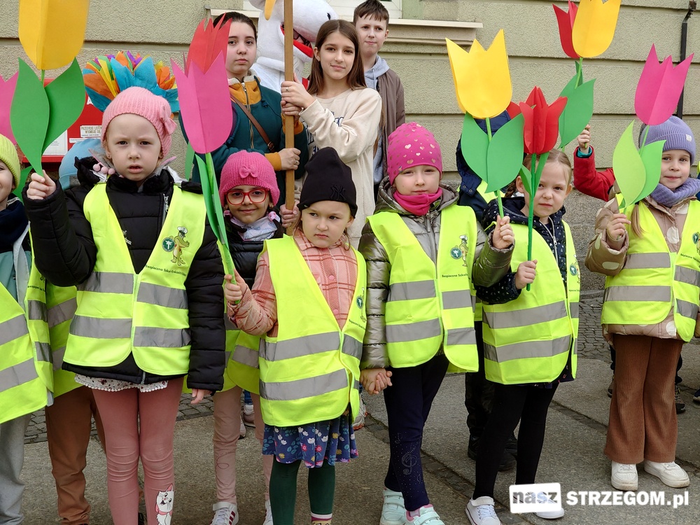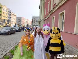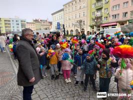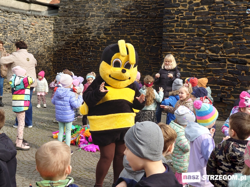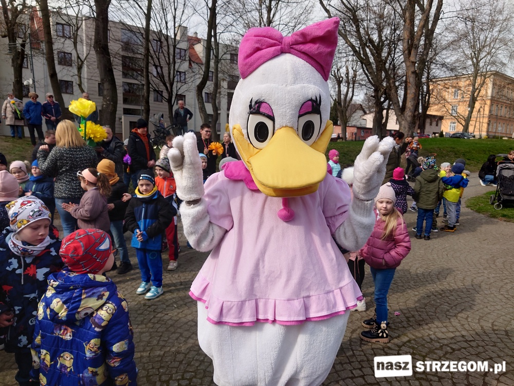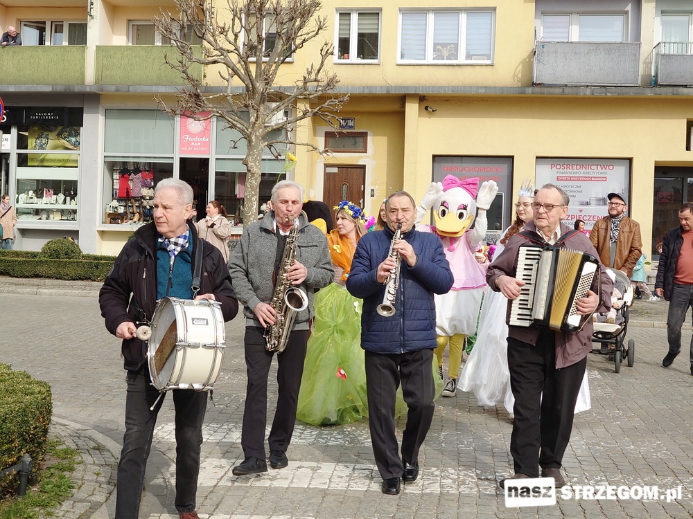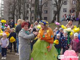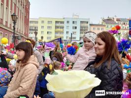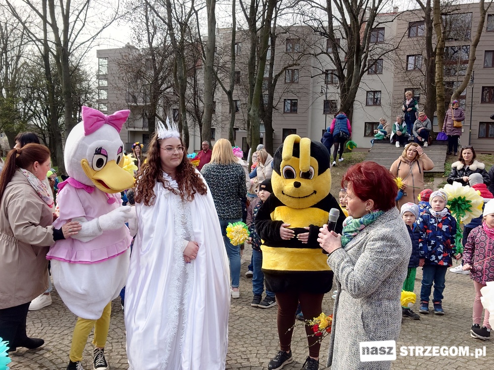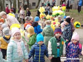 Kolorowe, dziecięce korowody pomaszerowały z przedszkoli pod ratusz, gdzie włodarze częstowali słodkościami. Następnie pochód udał się na strzegomskie planty. Tam w tanecznym rytmie nastąpiło oficjalne przywitanie wiosny.