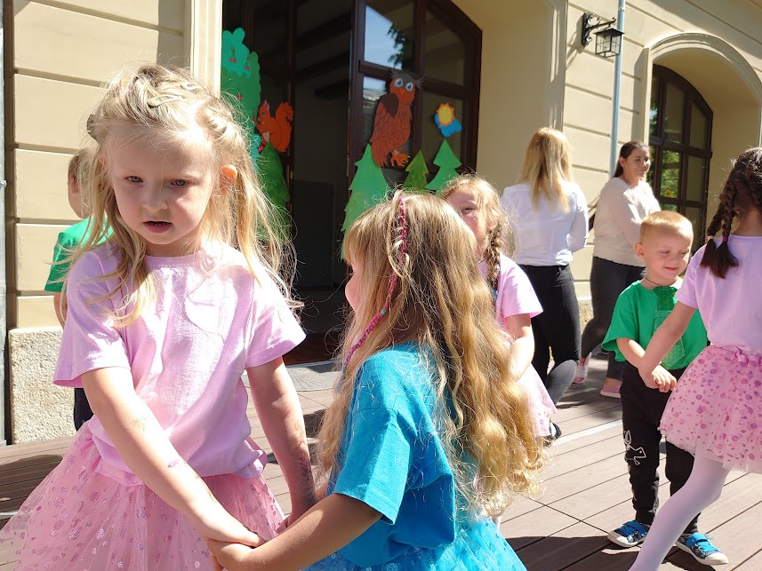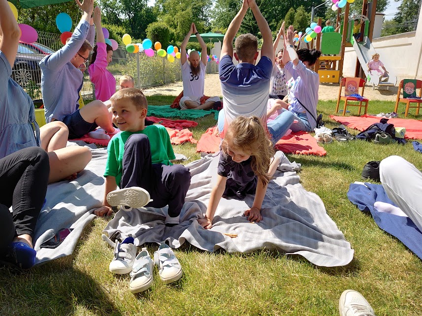 Po części artystycznej był smaczny poczęstunek, zabawy i krótkie zajęcia jogi dla dzieci i rodziców. Przedszkole w Morawie to bardzo klimatyczne miejsce, w którym widać silną więź dzieci i opiekunek. Jest to zapewne zasługa zasad wychowania Marii Montessori, którymi kierują się przedszkolanki w pracy z dziećmi.
