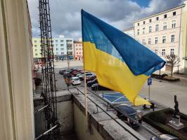Gmina Strzegom przygotowuje się do zapewnienia pomocy obywatelom okupowanej Ukrainy. Na znak jedności z miastem partnerskim Podhajce, na balkonie strzegomskiego ratusza zawisła niebiesko-żółta flaga.