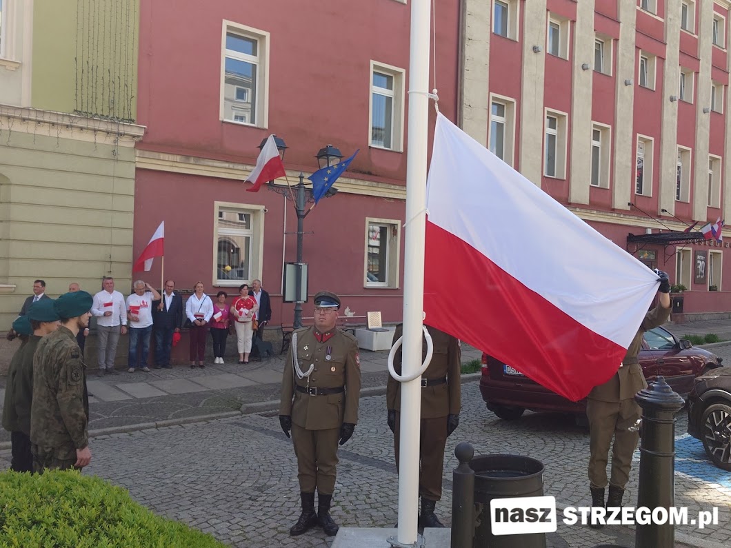 Obchody Dnia Flagi w mieście zostały zainicjowane kilka lat temu przez członków Związku Strzeleckiego Oddział Strzegom im. Orląt Lwowskich. Komendant związku – Błażej Kołodziej podkreśla, że podniesienie flagi symbolizuje dumę z posiadania barw narodowych.