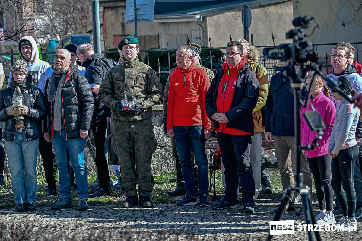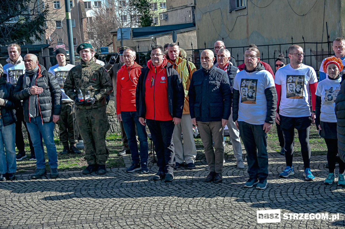Bieg poprzedziła krótka uroczystość i wspólne odśpiewanie hymnu Polski pod pomnikiem Żołnierzy Wyklętych. Wzięli w niej udział mieszkańcy, przedstawiciele samorządu, sympatycy Gazety Polskiej oraz Prawa i Sprawiedliwości, przedstawiciele Koła Sybiraków w Strzegomiu, Związku Harcerstwa Rzeczpospolitej, Związku Strzeleckiego Oddział Strzegom i innych organizacji.