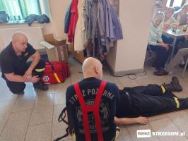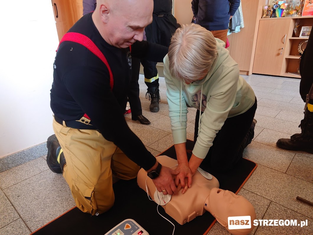 Spotkanie odbyło się w środę 12 marca. Druhowie z OSP Strzegom na fantomie ćwiczeniowym demonstrowali sztuczne oddychanie i masaż serca, a potem razem z uczestnikami ćwiczyli podstawy reanimacji. Pokazali również, jak w razie potrzeby korzystać z defibrylatora. Prezes strzegomskiej OSP Grzegorz Ratajski na wstępie wyjaśnił, dlaczego takie szkolenia są ważne. – Tu chodzi o to, żeby ludzie wiedzieli, jak się zachować, jak wezwać fachową pomoc medyczną, żeby po prostu nie bali się reagować.
