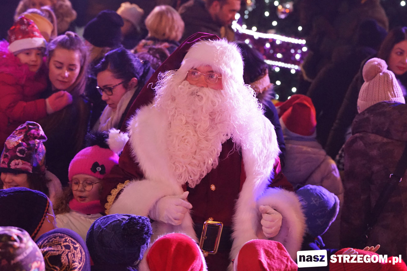 Święty Mikołaj rozświetlił choinkę przed strzegomskim ratuszem [FOTO]