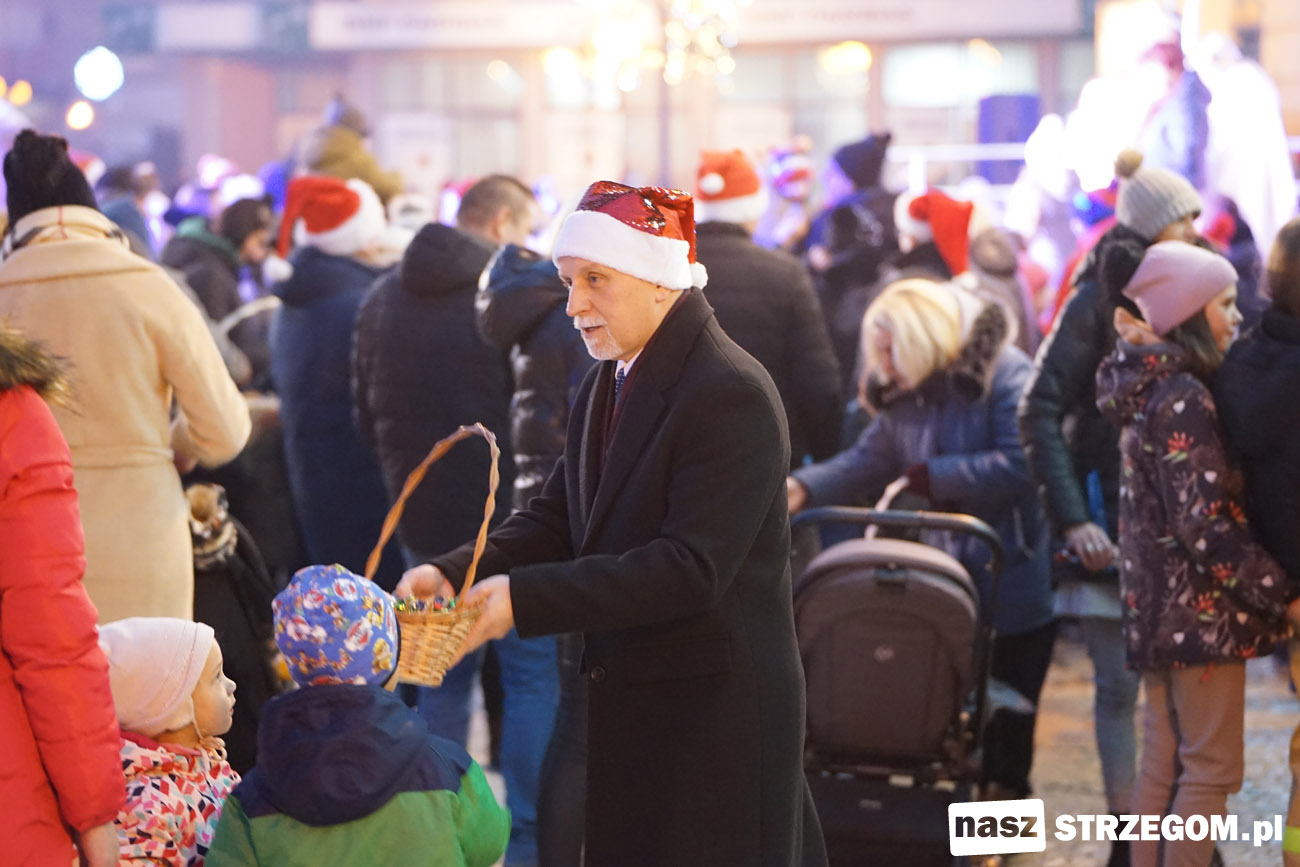Spotkanie przy ratuszu otworzyli burmistrz Strzegomia Zbigniew Suchyta oraz dyrektor Strzegomskiego Centrum Kultury Elżbieta Pienio. Powitali gościa w czerwonej pelerynie i rozpoczęli wspólną zabawę. Święty Mikołaj nie żałował czasu na występy przybyłych dzieci, wspólne zdjęcia i tańce. Pomocnicy częstowali w tym czasie słodyczami i rozdawali upominki. W ich rolę wcielili się strzegomscy samorządowcy oraz przedstawiciele Strzegomskiej Grupy Motocyklowej.