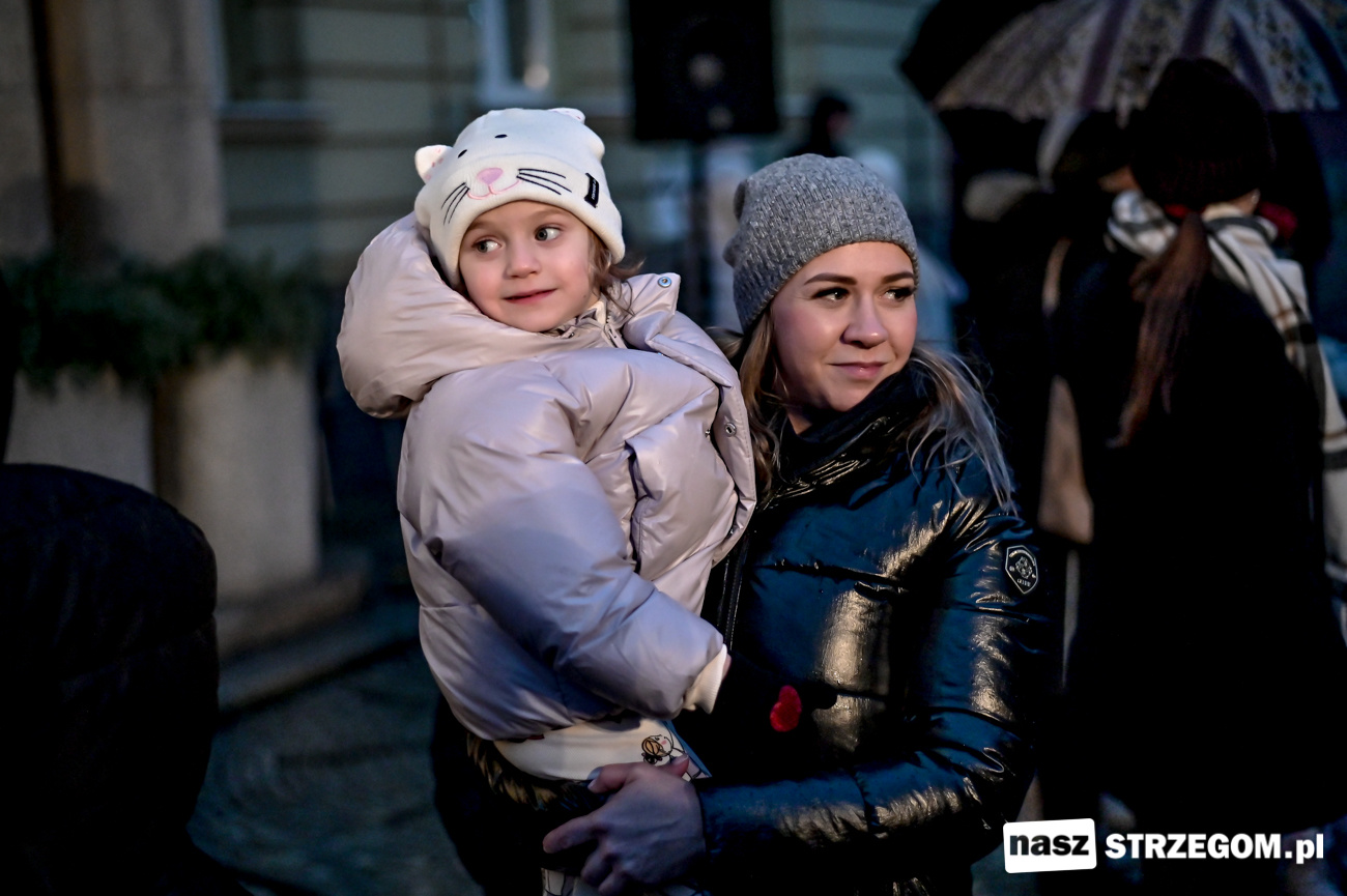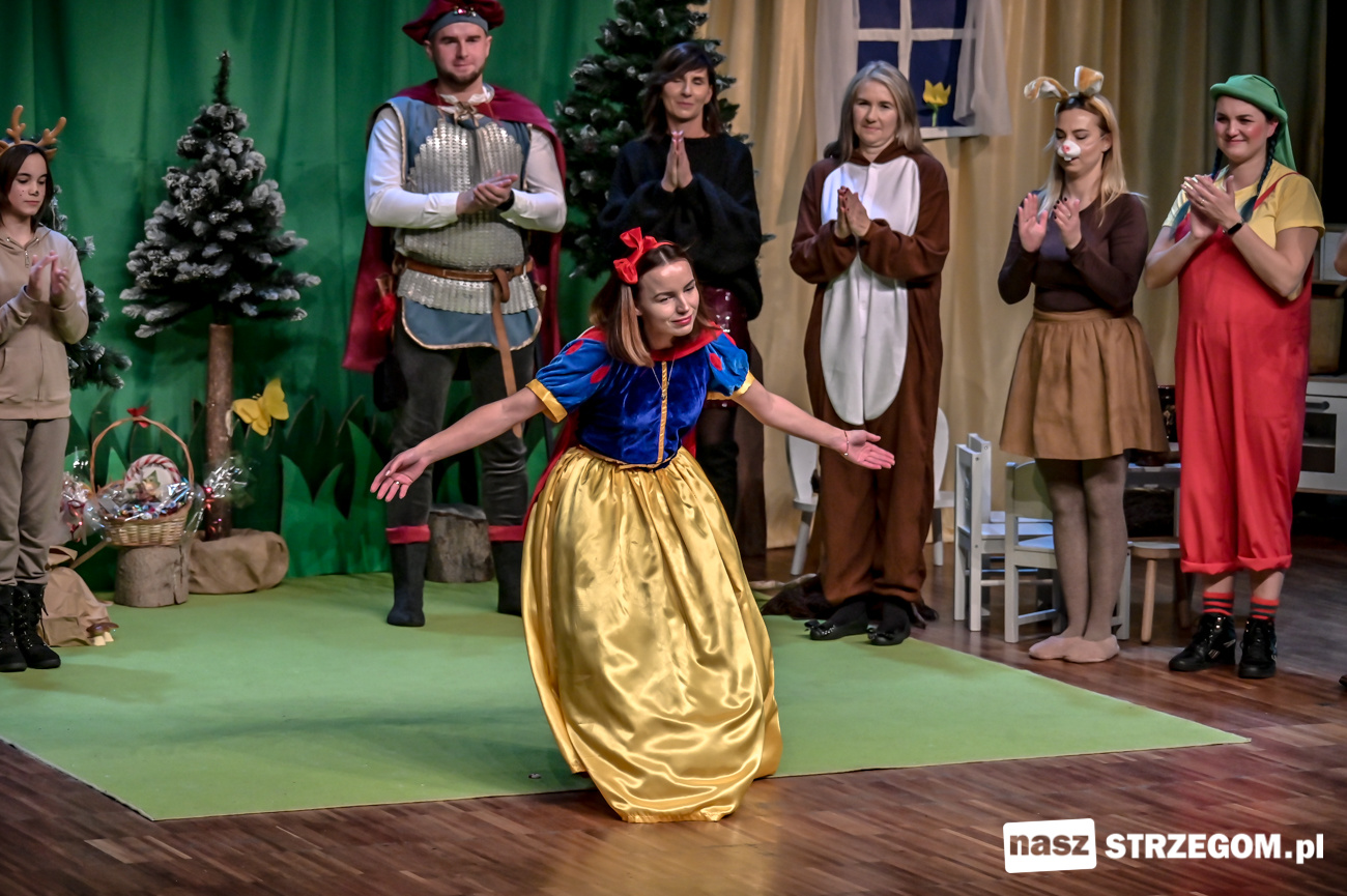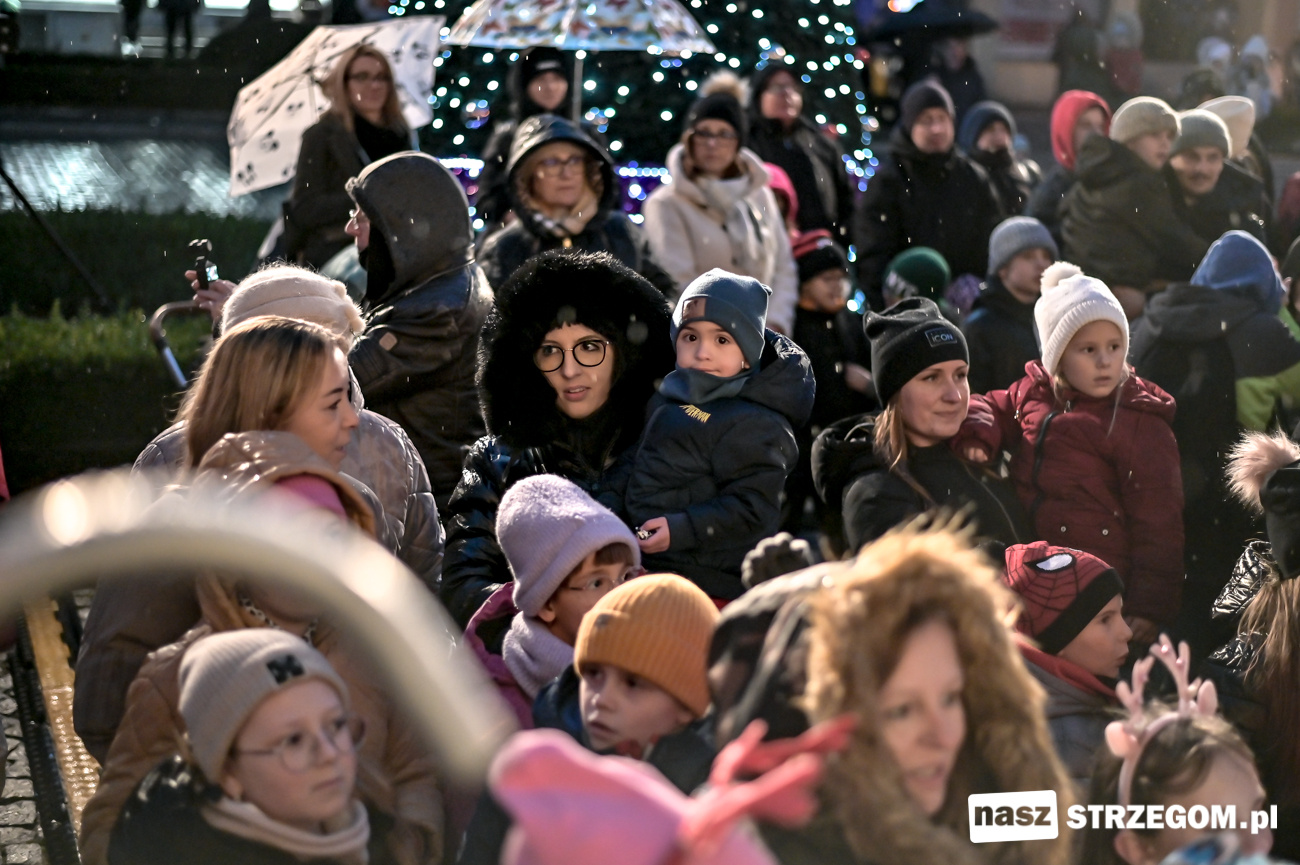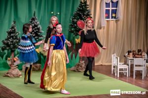 Po uruchomieniu iluminacji na strzegomskiej choince, Święty Mikołaj przeszedł z dziećmi ulicami miasta do Strzegomskiego Centrum Kultury, gdzie rodzice z Przedszkola nr 1 z Oddziałem Integracyjnym w Strzegomiu wystawili spektakl pt. „Królewna Śnieżka i 7 Krasnoludków”.