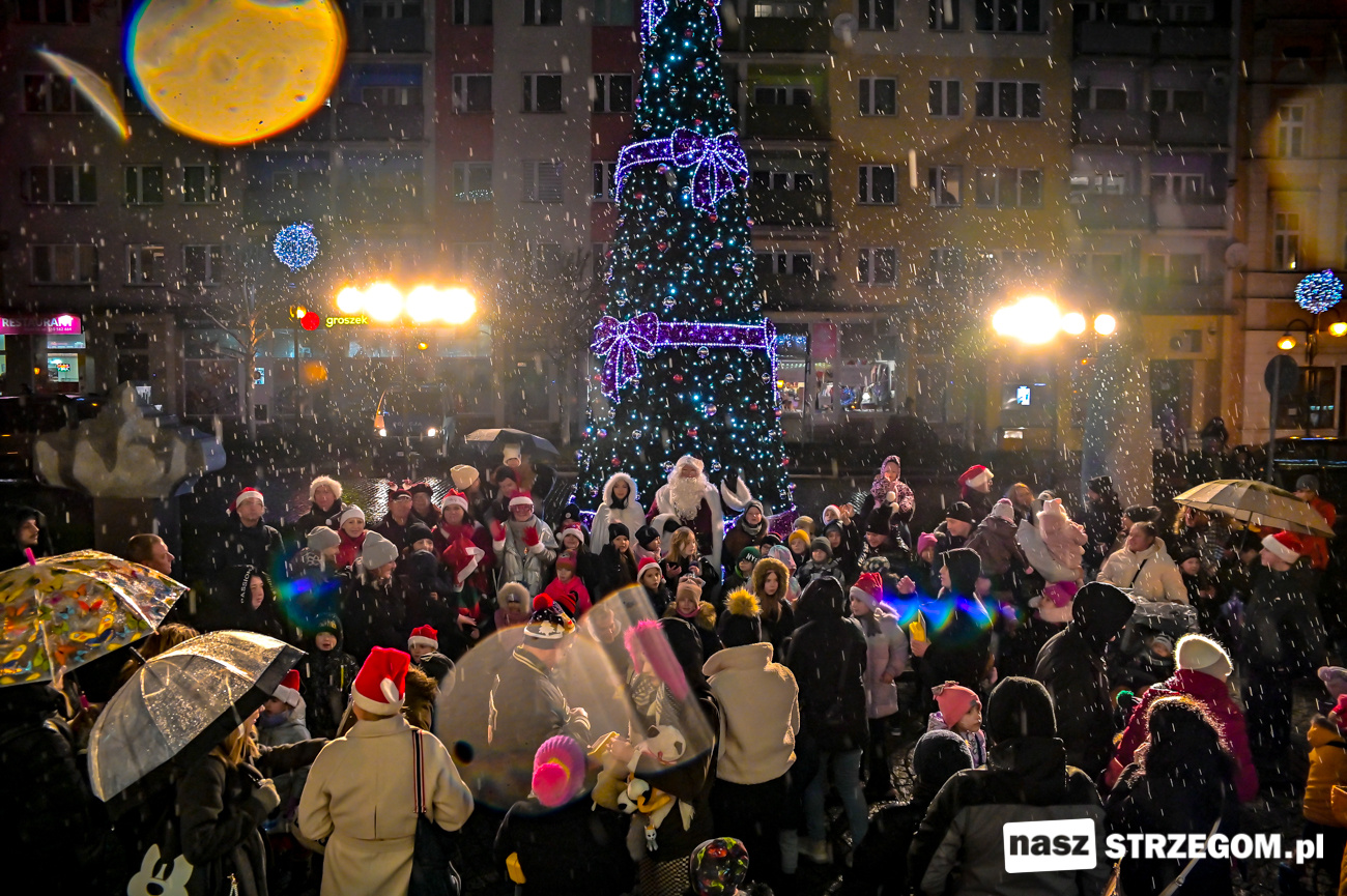 Boże Narodzenie coraz bliżej, a w większości miast przypominają o tym świąteczne iluminacje. Nie jest inaczej w Strzegomiu. 6 grudnia ich blask dopełniły światełka na choince przy ratuszu. Punktualnie o 16.00 drzewko rozświetlił święty Mikołaj, który wraz ze śnieżynkami przybył na miejski Rynek kabrioletem.
