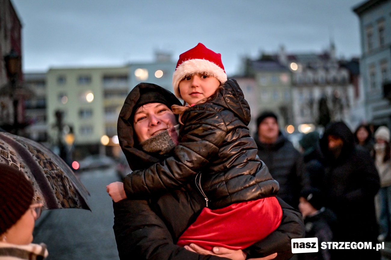 Święty Mikołaj rozświetlił choinkę przed strzegomskim ratuszem [FOTO]