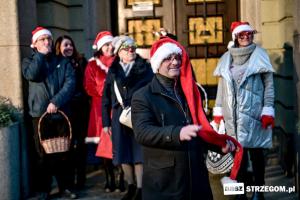 Spotkanie przy ratuszu otworzyli burmistrz Strzegomia Krzysztof Kalinowski oraz dyrektor Strzegomskiego Centrum Kultury Elżbieta Pienio. Powitali gościa w czerwonej pelerynie i rozpoczęli wspólną zabawę. Święty Mikołaj nie żałował czasu na wspólne zdjęcia i zabawy z najmłodszymi. Pomocnicy częstowali w tym czasie słodyczami i rozdawali upominki. W ich rolę wcielili się strzegomscy samorządowcy oraz przedstawiciele Strzegomskiej Grupy Motocyklowej, którzy na Rynek przybyli świątecznie ozdobionymi pojazdami.