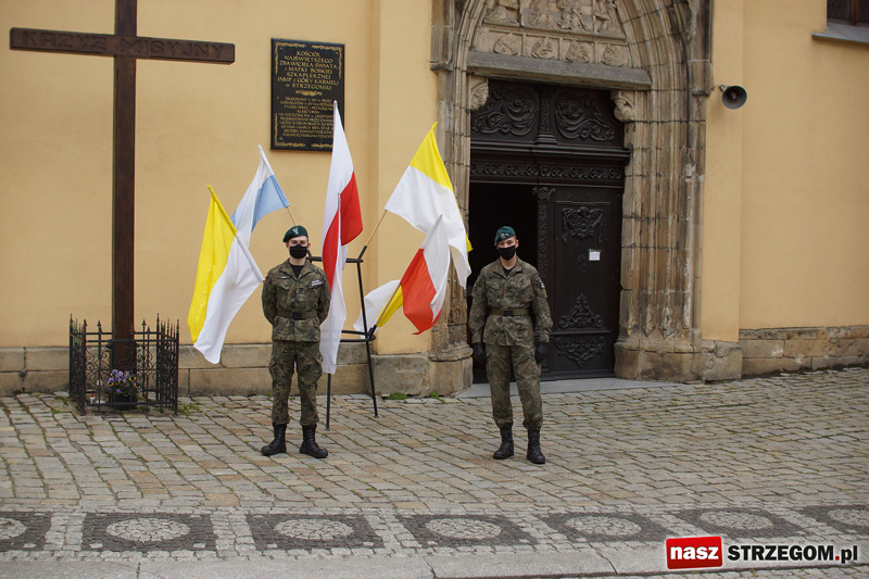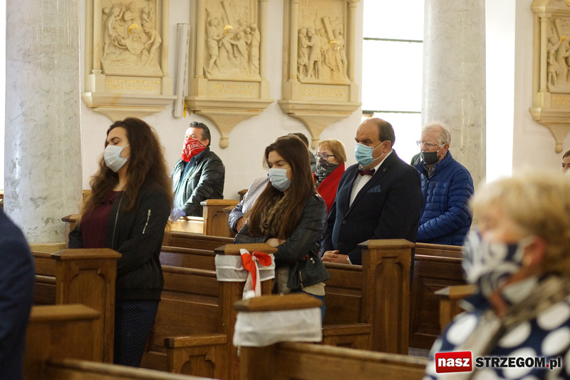 O godz. 10.30 w Kościele pw. Najświętszego Zbawiciela Świata i Matki Boskiej Szkaplerznej z Góry Karmel w Strzegomiu odprawiono mszę św. w intencji ojczyzny. Nabożeństwu przewodniczył bp pomocniczy diecezji świdnickiej - Adam Bałabuch. Zgodnie z obostrzeniami związanymi z pandemią koronawirusa, we mszy św. uczestniczyło 100 osób.