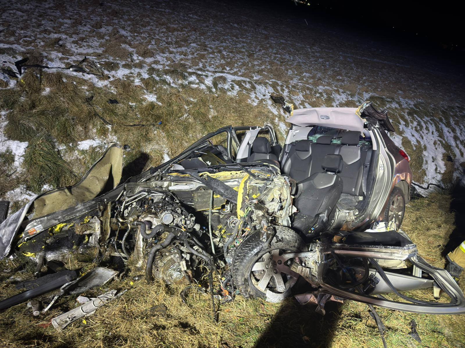 Służby otrzymały zgłoszenie o wypadku o godzinie 5.09. – Na miejsce skierowaliśmy trzy zastępy straży pożarnej – jeden z OSP Strzegom i dwa z JRG PSP Świebodzice. Na drodze nr 382 doszło do zderzenia dwóch pojazdów – ciężarowego i osobowego. Kierujący samochodem ciężarowym znajdował się poza pojazdem – opuścił go o własnych siłach, natomiast kierowca samochodu osobowego był uwięziony w zgniecionym pojeździe. Po zapewnieniu dostępu do mężczyzny znajdujący się na miejscu medyk stwierdził zgon – relacjonuje bryg. Łukasz Grzelak z KP PSP w Świdnicy. Dodaje też, że droga jest nieprzejezdna, a na miejscu czynności prowadzi policja.
