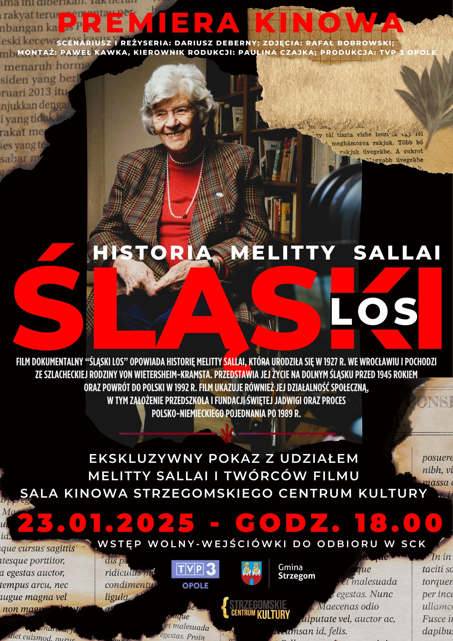 Producentem filmu „Śląski Los” jest TVP3 Oddział Opole. Projekcja obrazu odbędzie się 23 stycznia o godzinie 18:00 w sali widowiskowej Strzegomskiego Centrum Kultury. Swój udział zapowiedziała Melitta Sallai oraz twórcy filmu. Wstęp jest bezpłatny, jednak obowiązują wejściówki, które należy odebrać wcześniej w sekretariacie SCK.