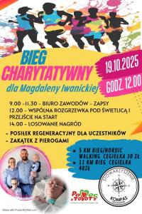 – Przyjdźcie, pobiegnijcie, przekażcie cegiełkę – razem możemy więcej – zachęcają organizatorzy. Bieg odbędzie się na dwóch dystansach: 5 i 11 kilometrów. Krótszą trasę można pokonać biegnąc lub maszerując z kijkami. Na mecie na uczestników będzie czekał posiłek regeneracyjny, strefa gastronomiczna oraz nagrody.