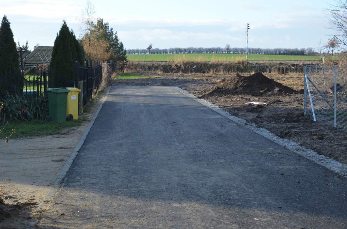Strzegomscy urzędnicy informują, że około 220 metrów drogi, zlokalizowanej wzdłuż pól, pokryto nawierzchnią asfaltową. Odcinek w pobliżu budynków na ul. Strzegomskiej 2–4 wykonano w kostce betonowej.