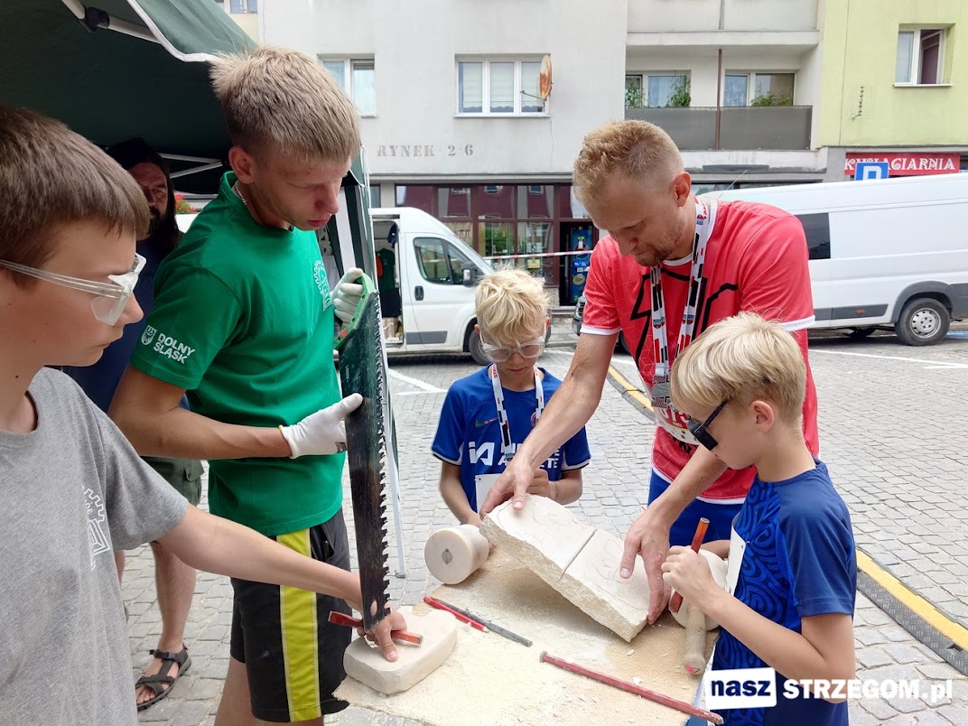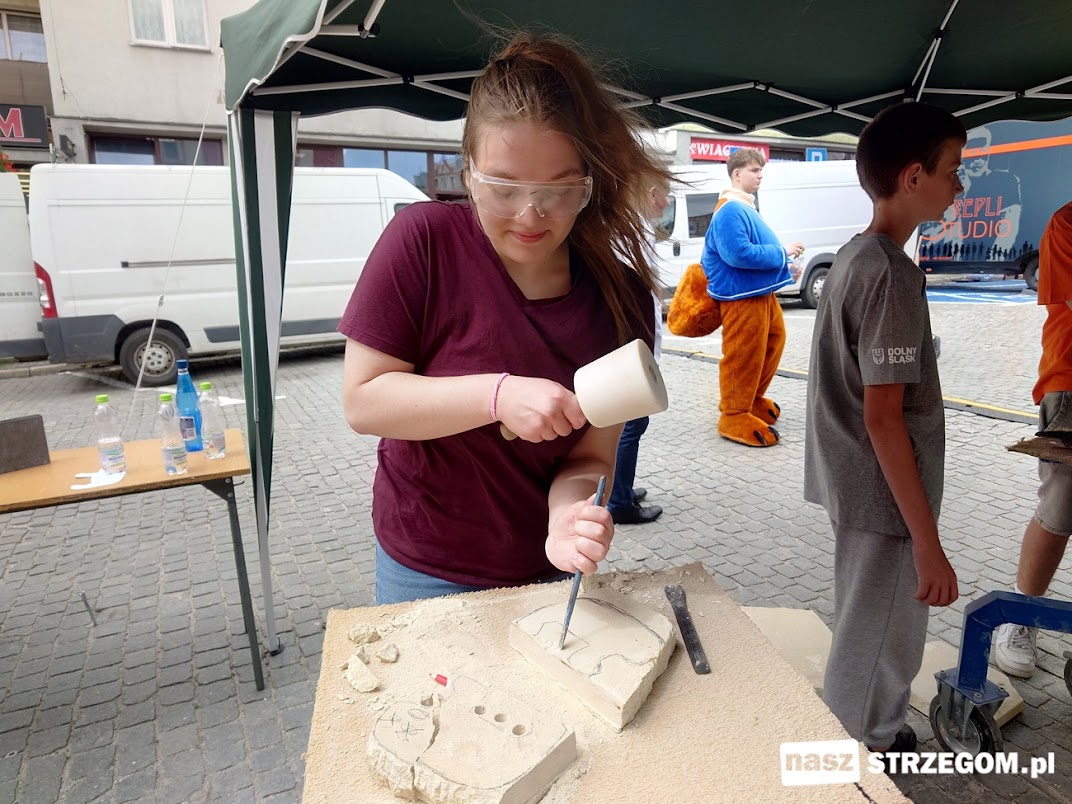 Na strzegomskim rynku warsztaty z obróbki kamienia prowadzili Jerzy Zysk, Michał Firlej i Tomasz Nowak. Każdy chętny mógł spróbować niełatwej sztuki kamieniarskiej wykorzystując tradycyjne narzędzia. Krzysztof Skolak z Fundacji „Bazalt” zaznacza, że tak samo kiedyś pracowali rzeźbiarze antyczni.