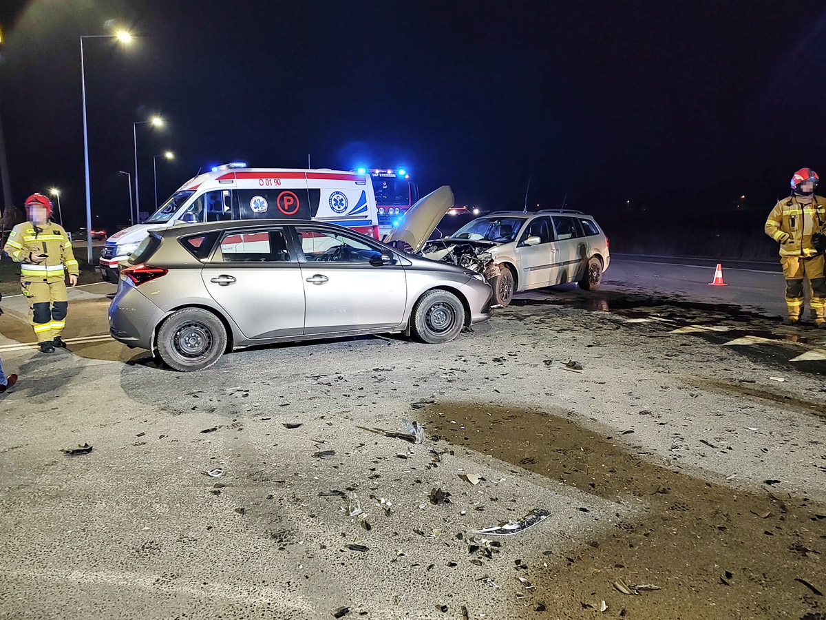 28 lutego przed godziną 19.00 na skrzyżowaniu krajowej „piątki” z drogą prowadzącą do centrum handlowego w Strzegomiu doszło do zdarzenia drogowego z udziałem trzech samochodów. Znajdowało się w nich łącznie dziewięć osób. Do szpitala trafiły dwie osoby, w tym 8-miesieczne dziecko.