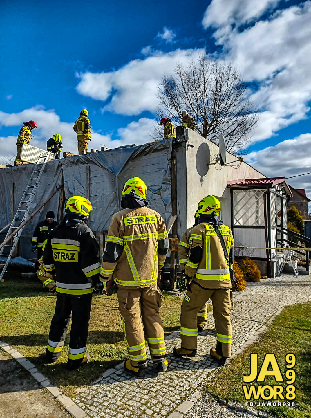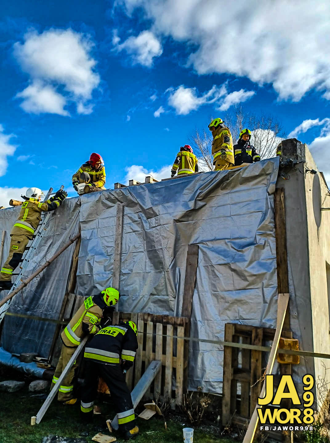 Jak informują druhowie z OSP Jawor, działania strażaków polegały na zabezpieczeniu dachu budynku za pomocą plandek. Akcja była o tyle trudna, że działaniom służb towarzyszył silny wiatr.