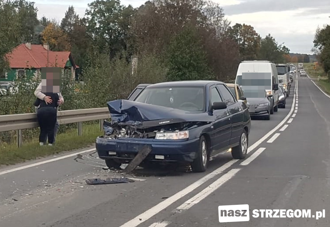 Zderzenie dwóch osobówek na krajowej „piątce” w Strzegomiu [FOTO]