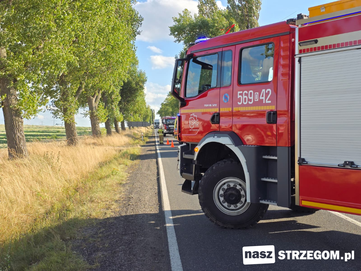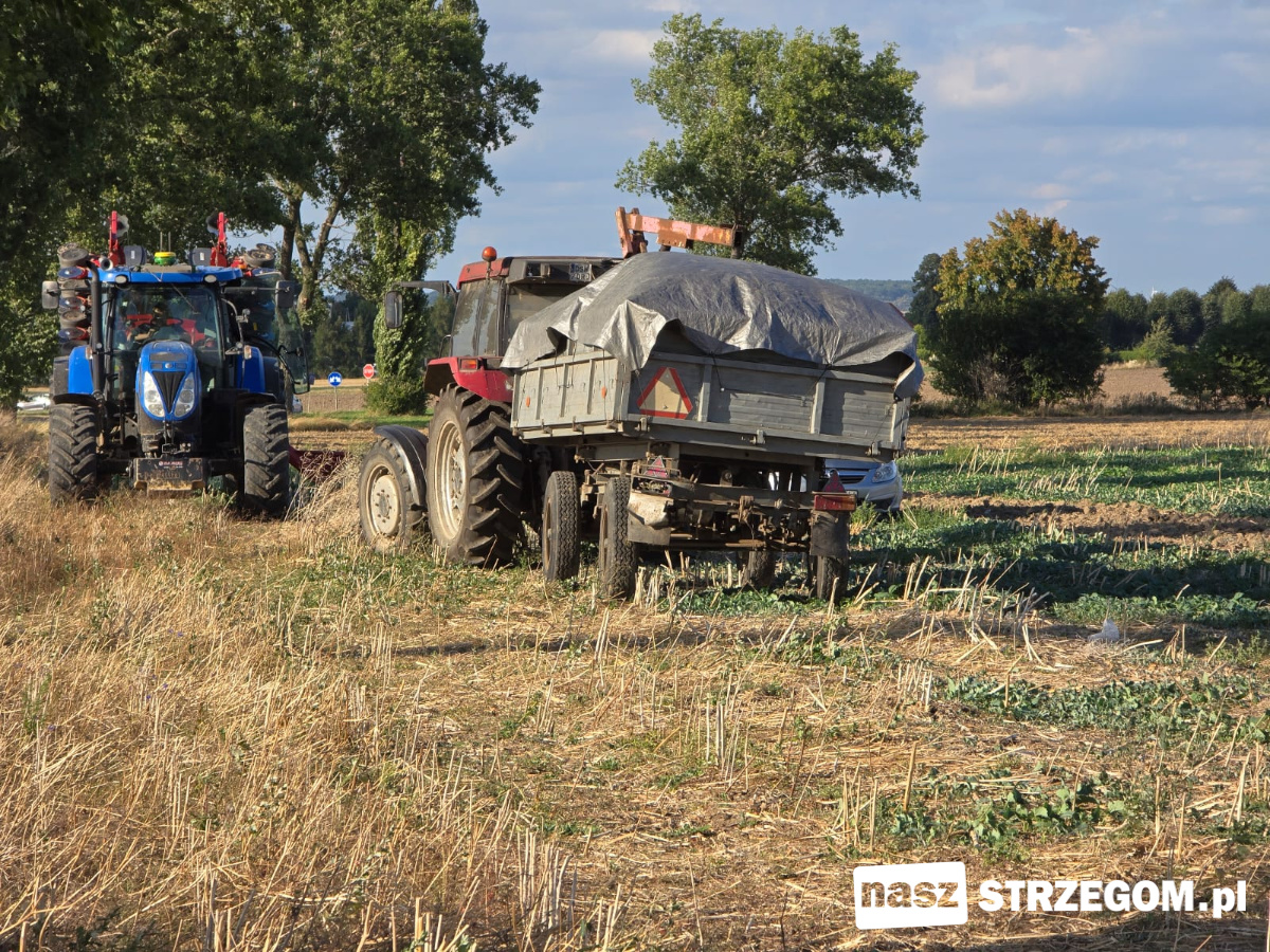 Na drodze wojewódzkiej nr 374 między Świebodzicami a Strzegomiem w okolicach tzw. patelni grochotowskiej doszło do zdarzenia samochodu osobowego z przyczepą ciągnika rolniczego. Przejazd w miejscu zdarzenia jest zablokowany.