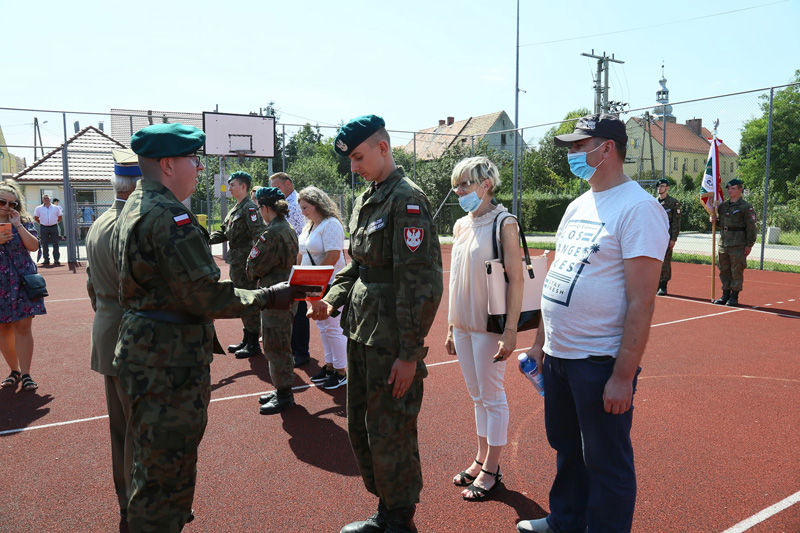 - Po złożeniu meldunku o gotowości pododdziału do uroczystości, podniesieniu flagi państwowej na maszt oraz odegraniu hymnu Polski, trójka młodych strzelców złożyła swoje przyrzeczenie. Po okolicznościowych przemówieniach nadarzyła się okazja, aby wyróżnić strzelców, organizacje oraz wolontariuszy, którzy włączyli się w inicjowane przez nasz oddział akcje wspomagania walki z pandemią wirusa Covid-19 - informuje st. sierż. ZS Błażej Kołodziej.