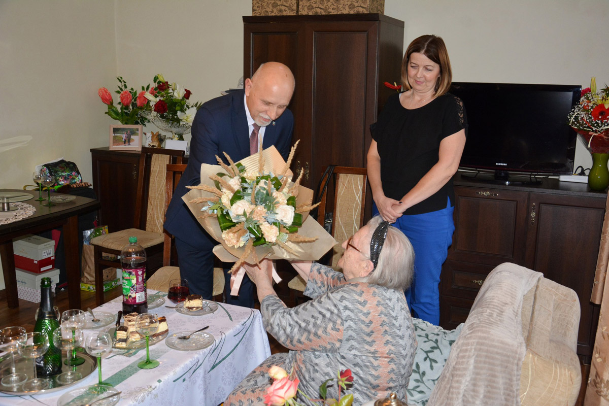 - Niech każda chwila będzie źródłem szczęścia i niech upływa w spokoju i zdrowiu – życzył stulatce burmistrz Strzegomia, Zbigniew Suchyta. Towarzyszyli mu przewodniczący Rady Miejskiej – Piotr Szmidt oraz kierownik Urzędu Stanu Cywilnego – Aneta Zaskórska, którzy obdarowali jubilatkę kwiatami oraz urodzinowym prezentem.