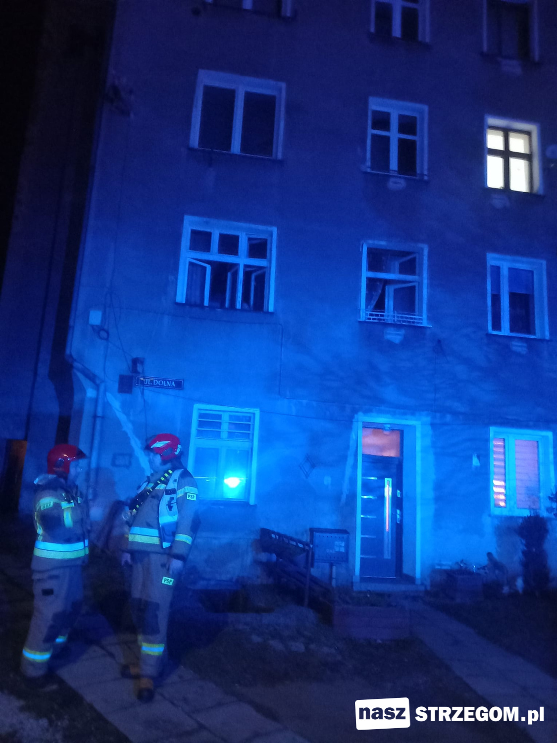 Cztery zastępy straży pożarnej zostały zadysponowane 6 stycznia około godziny 22.00 na ulicę Dolną w Strzegomiu. Powodem ich interwencji był wyczuwalny zapach gazu w budynku wielorodzinnym pod numerem 2.