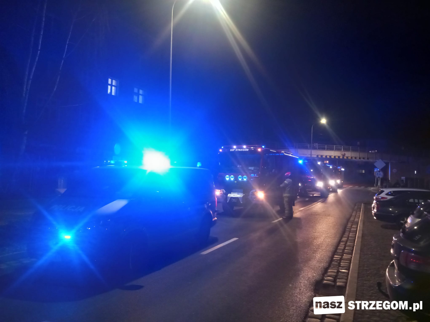 Nocna interwencja służb przy ulicy Dolnej w Strzegomiu [FOTO]