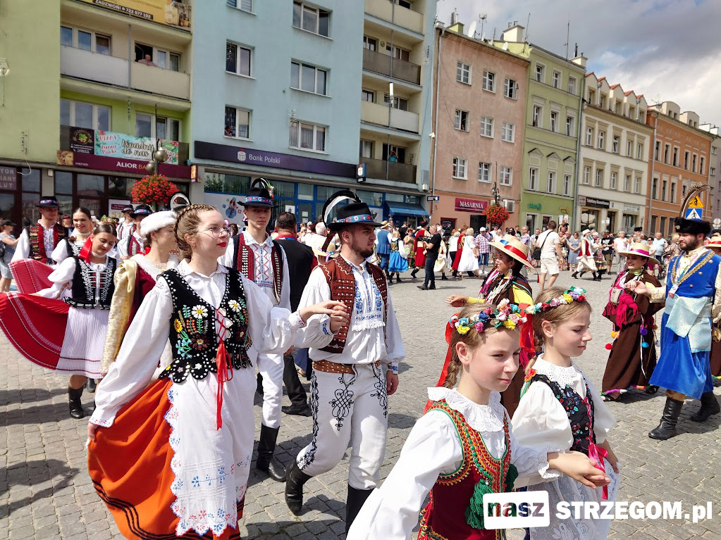XXXI Międzynarodowy Festiwal Folkloru w Strzegomiu dobiega końca. Czwarty dzień festiwalowy był przebogaty w atrakcje. Rozpoczął się wczesnym rankiem od śniadania na strzegomskim rynku. Po mszy świętej barwny korowód zespołów przeszedł do centrum, gdzie wszyscy uczestnicy tradycyjnie zatańczyli barwnego poloneza.