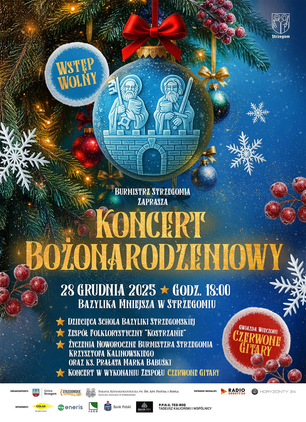 Koncerty bożonarodzeniowe są już tradycją w gminie Strzegom. W tym roku z repertuarem najpiękniejszych kolęd i pastorałek miasto odwiedzi zespół „Czerwone Gitary”. Artyści wystąpią w Bazylice Mniejszej.
