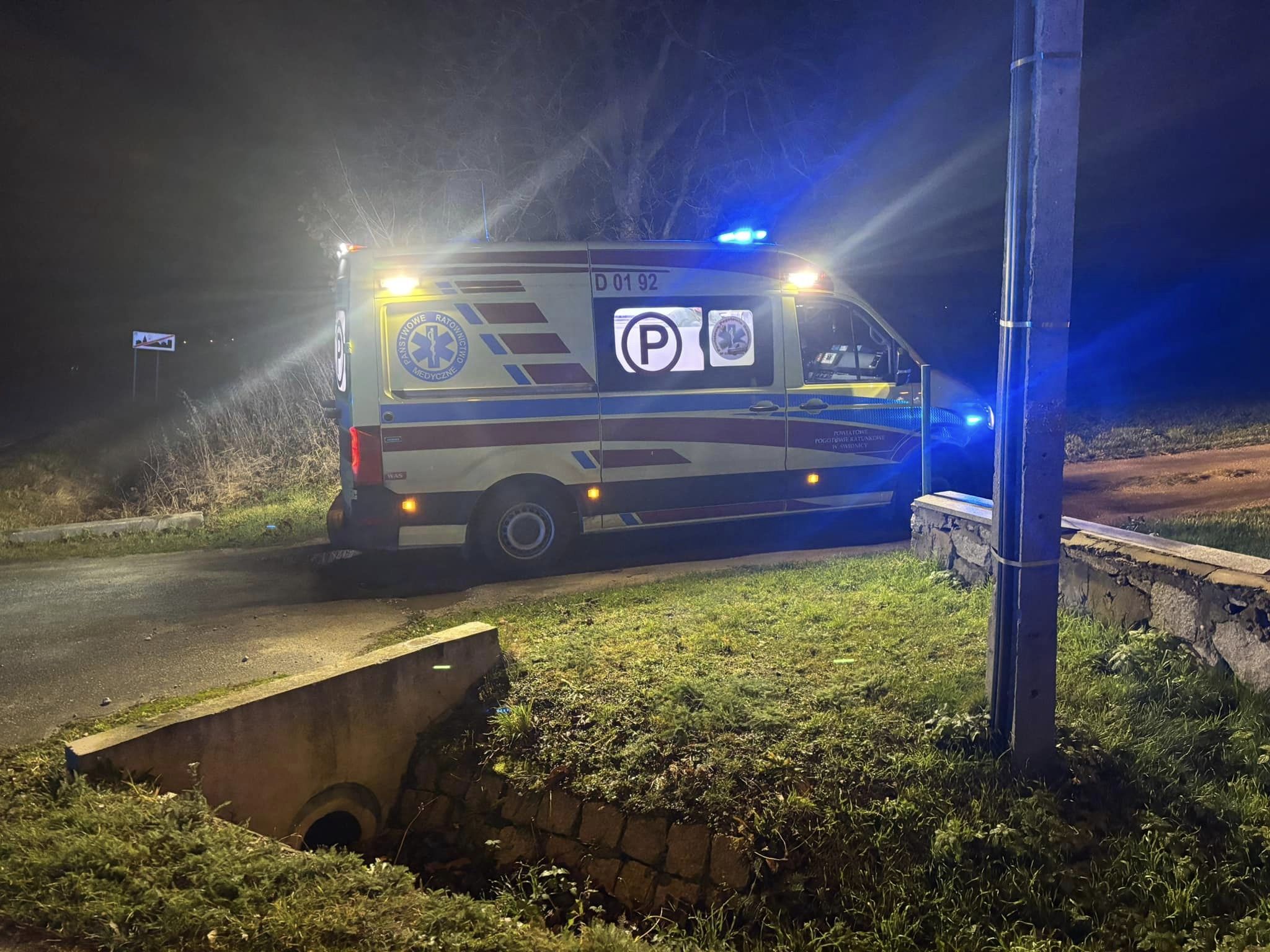 Mł. bryg. Łukasz Grzelak z Komendy Powiatowej Państwowej Straży Pożarnej w Świdnicy poinformował, że zgłoszenie o wypadku wpłynęło o godzinie 21:29. – Na miejscu zastaliśmy pojazd osobowy, który wcześniej uderzył w przepust drogowy i dachował – relacjonuje zastępca komendanta straży pożarnej w Świdnicy